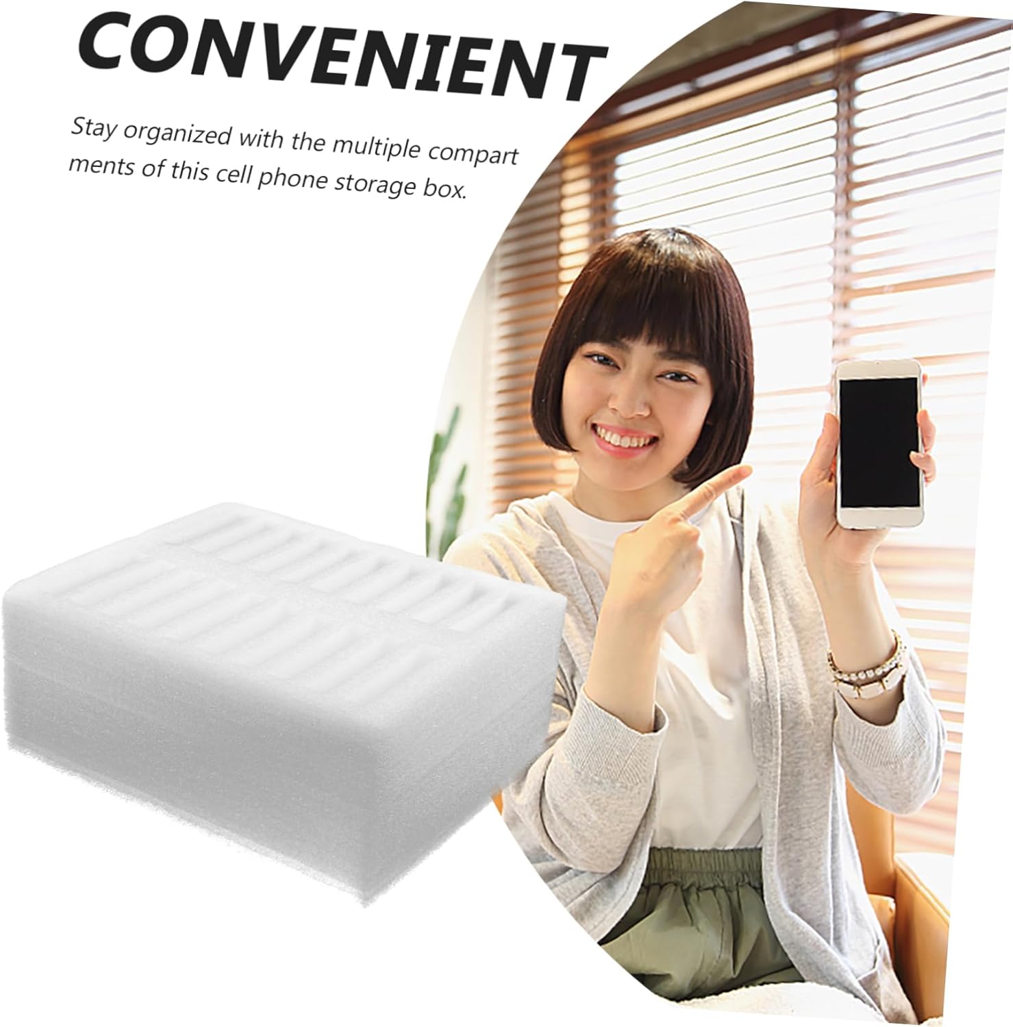 – Stay organized with the multiple compartments of this cell phone storage box cell.
