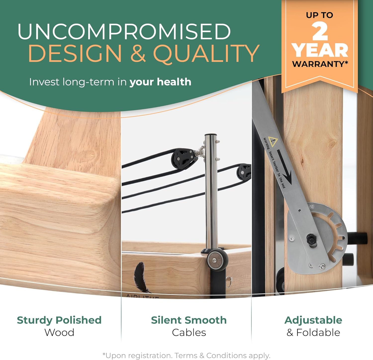 Foldable Pilates Reformer Machine. Wooden Frame Reformer Machine with Strings, Versatile Accessories & 50+ Expert-Guided Workouts. Home Equipment for Strength Training, Rehabilitation, & Flexibility
