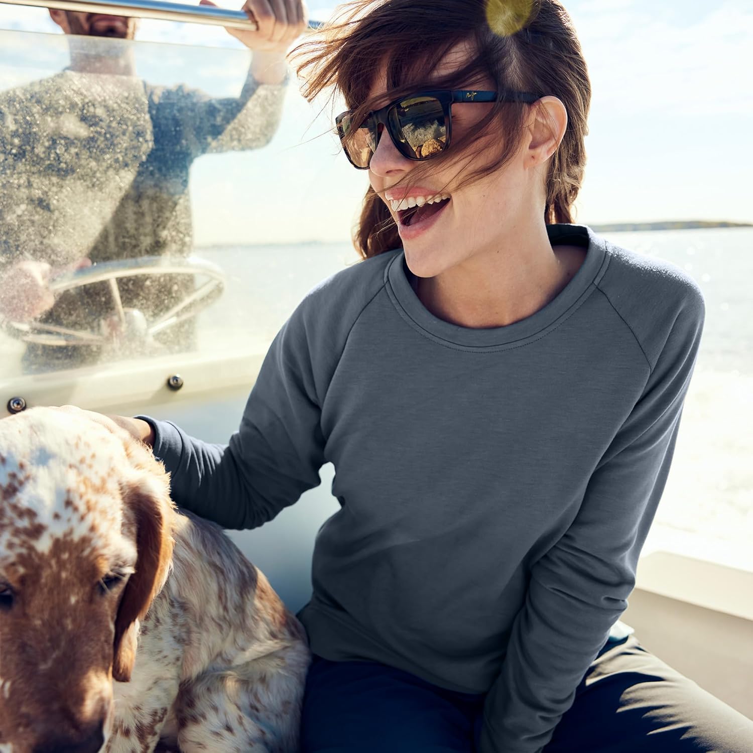 Kangaroo pocket; Thumbholes; Feminine curved hemline Dropped hem with side slits; Textured waffle-knit material Raglan sleeves; Side slits Crewneck; Raglan sleeves; Side slits Elastic waistband with drawstring; Side pockets