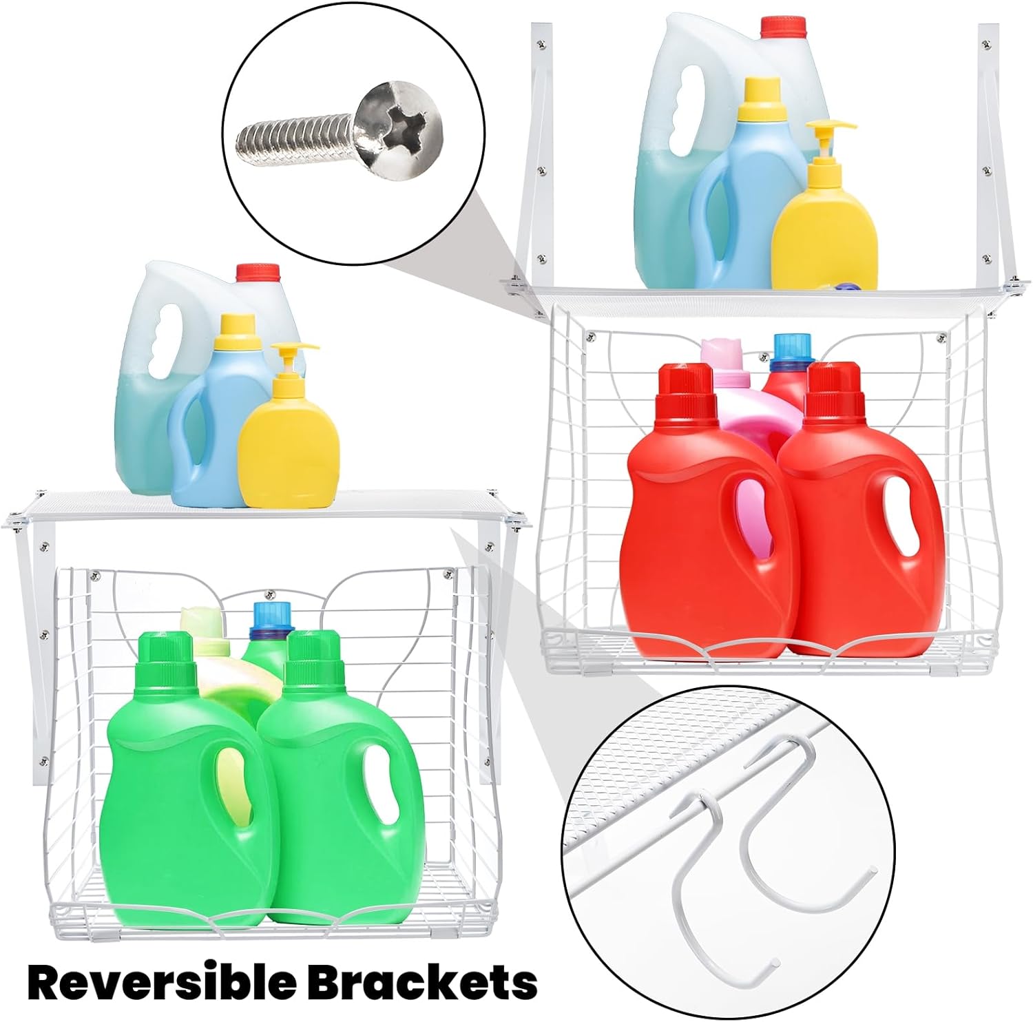 Premium Quality: These laundry shelves with wire baskets are made of strong steel wire with premium powder coating finish, which are sturdy, anti-rust and anti-corrosion. Wire shelves over washer and dryer are sturdy enough to hold up to 50 lbs, great for organizing heavy duty items on the wall.