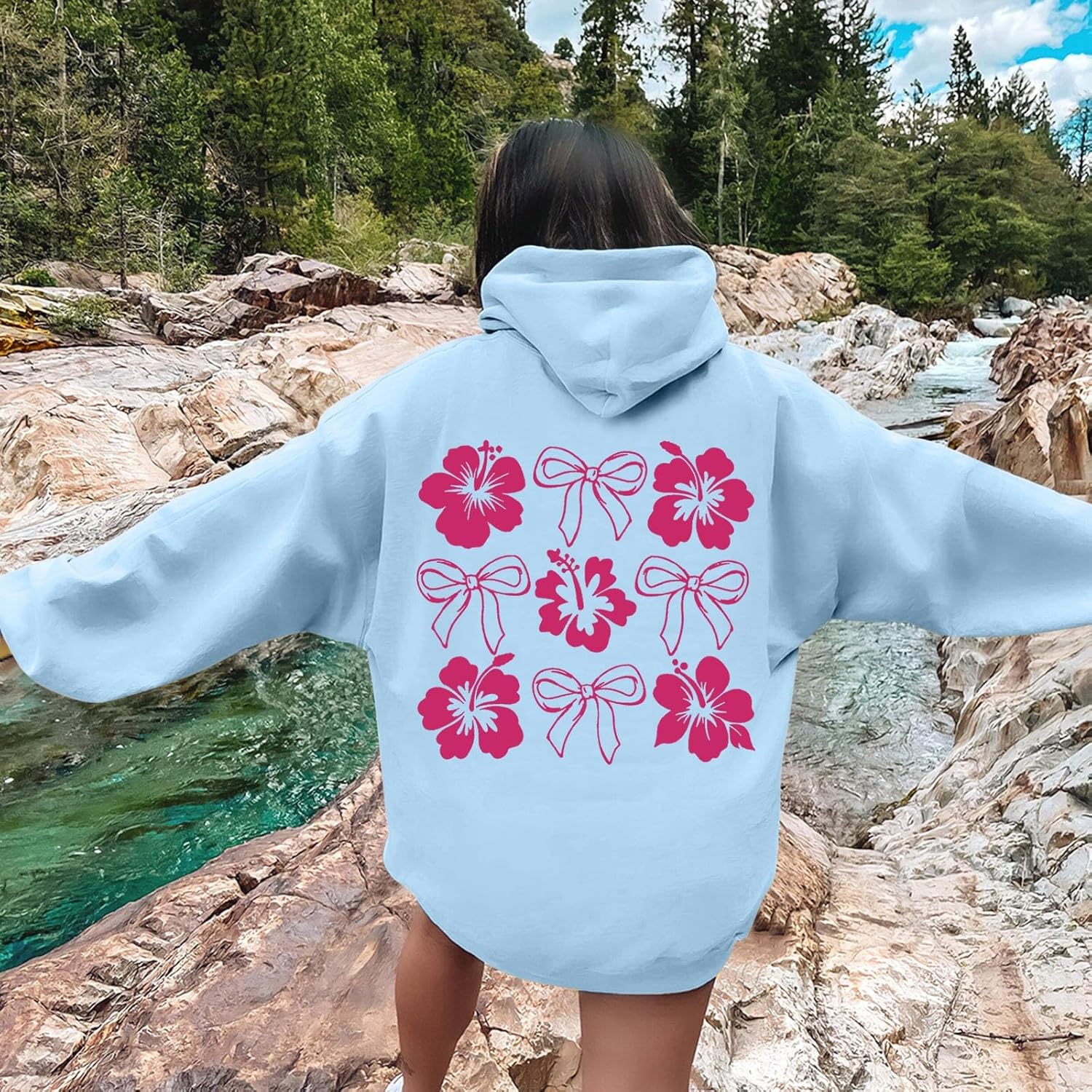 Graphic Hoodies for Women Cute Long Sleeve Preppy Aesthetic Sweatshirts Fall Oversized Pullover Hooded Tops with Pockets