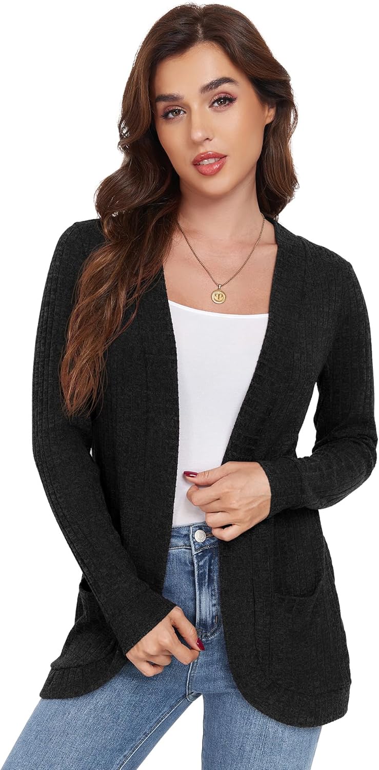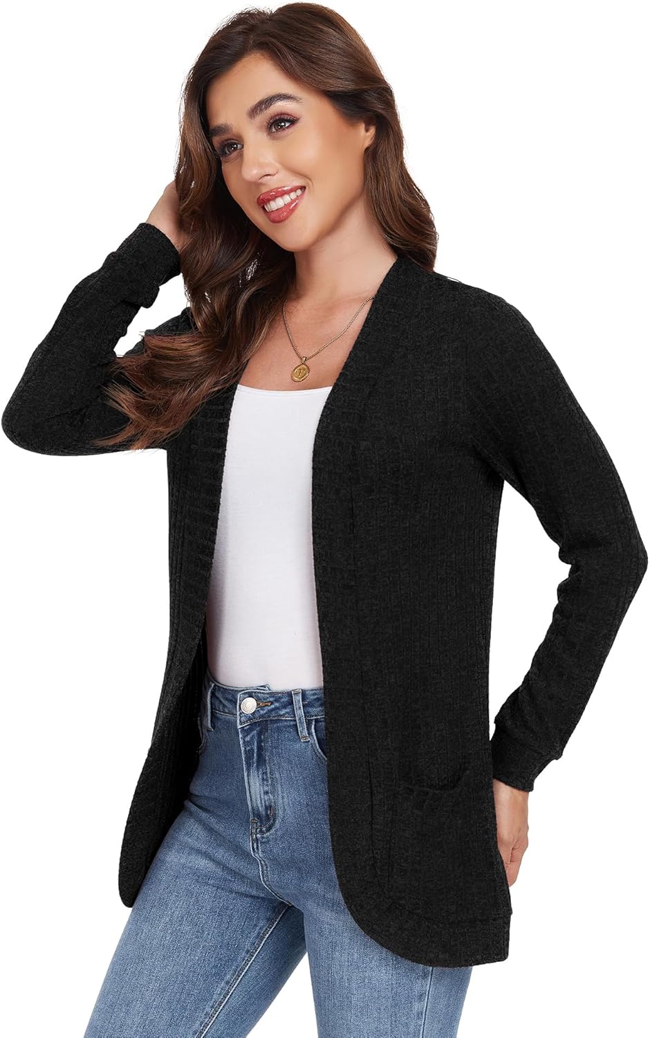 Women Open Front Casual with Pockets Sweater Cardigan for Office, Work