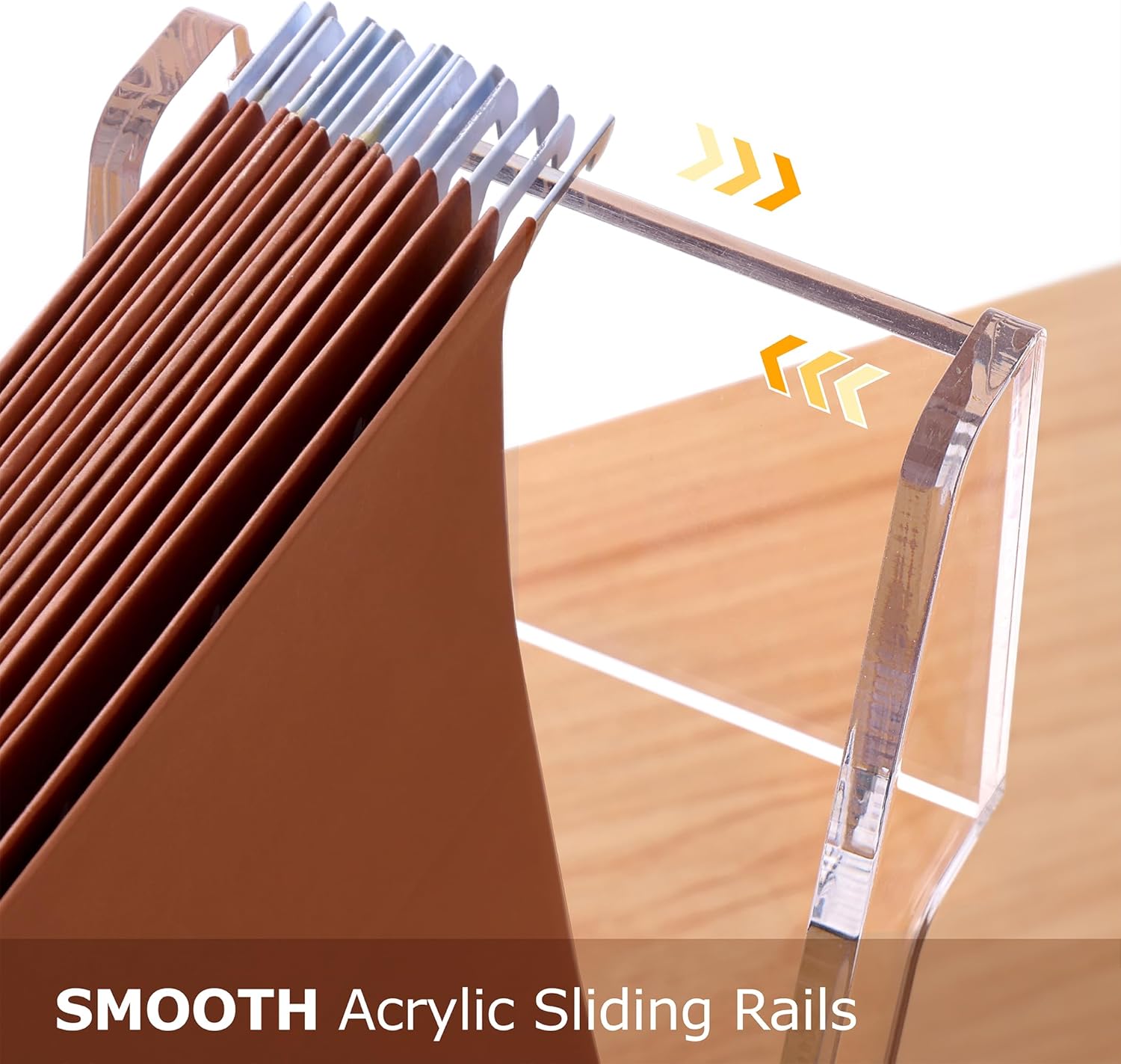 【Premium Quality Material】Constructed from high-grade PMMA acrylic, this hanging file storage frame is exceptionally sturdy, resistant to breakage or deformation, and easy to clean. Its polished rounded corners and high transparency provide a sleek and modern look, ensuring durability and long-lasting use.