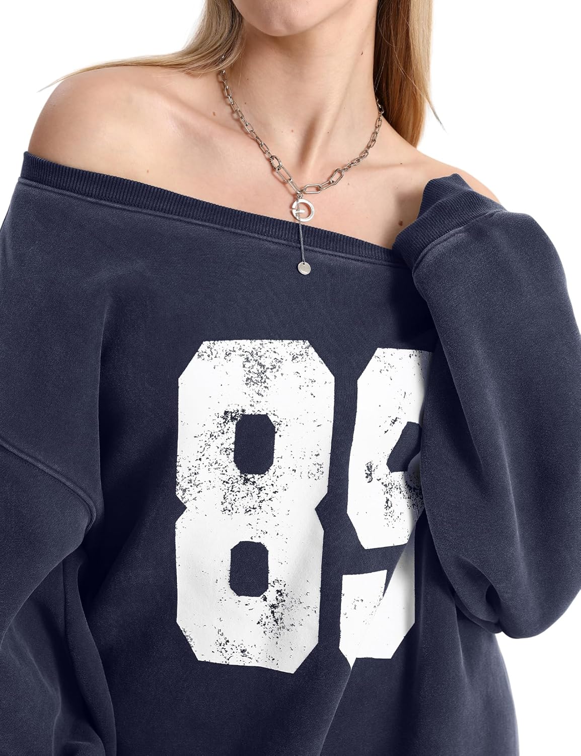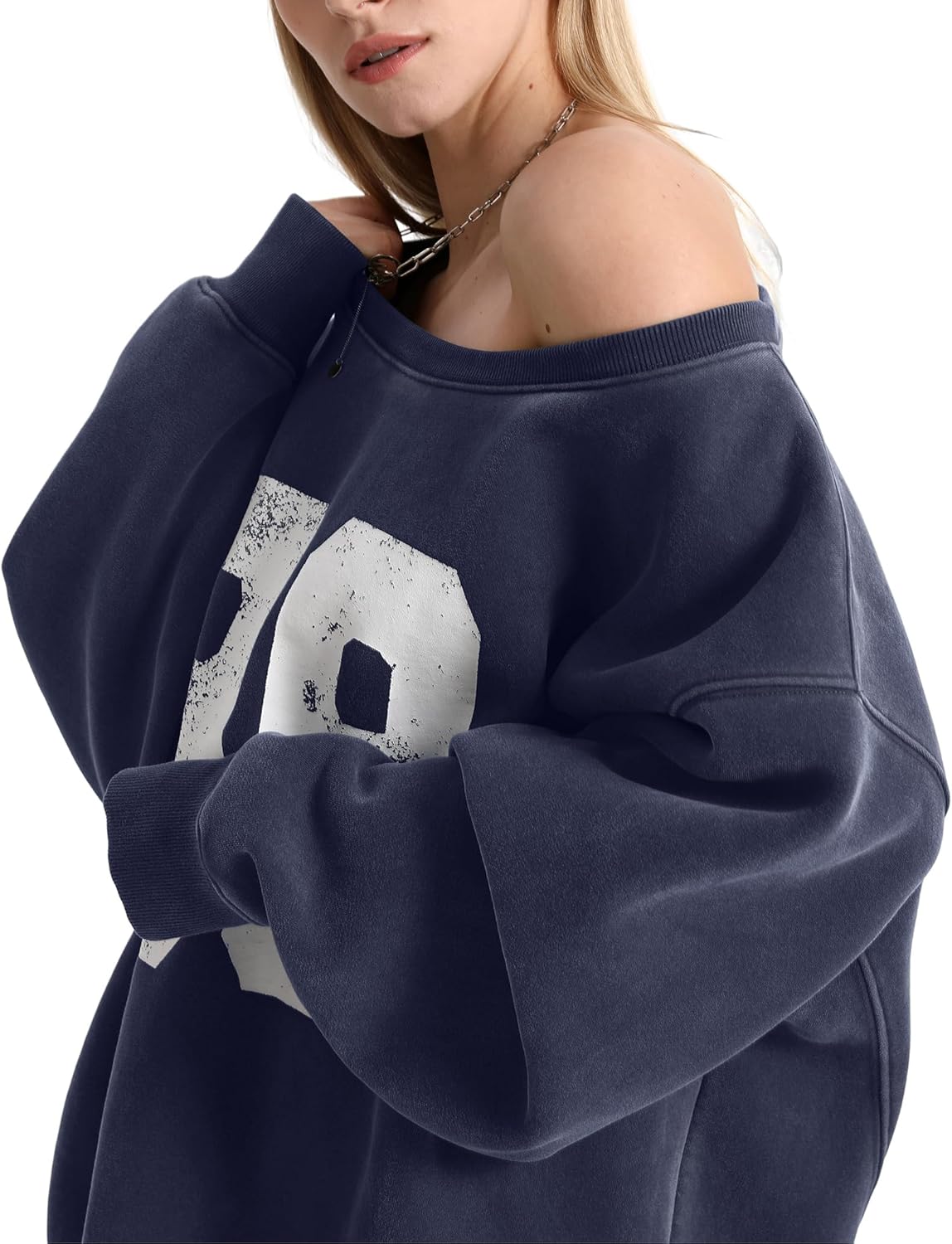 HATANT Heavyweight Fleece Sweatshirts Women’s Graphic Off Shoulder Sweatshirts