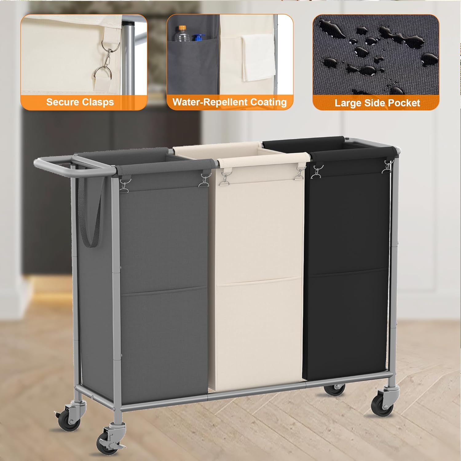 Tear-Resistant & Water-Repellent Liner: Our premium Laundry Divider Sorter features a 600D Oxford fabric liner that is tear-resistant for long-lasting durability. It also has a water-repellent coating on the inside, simplifying cleaning and ensuring longevity.