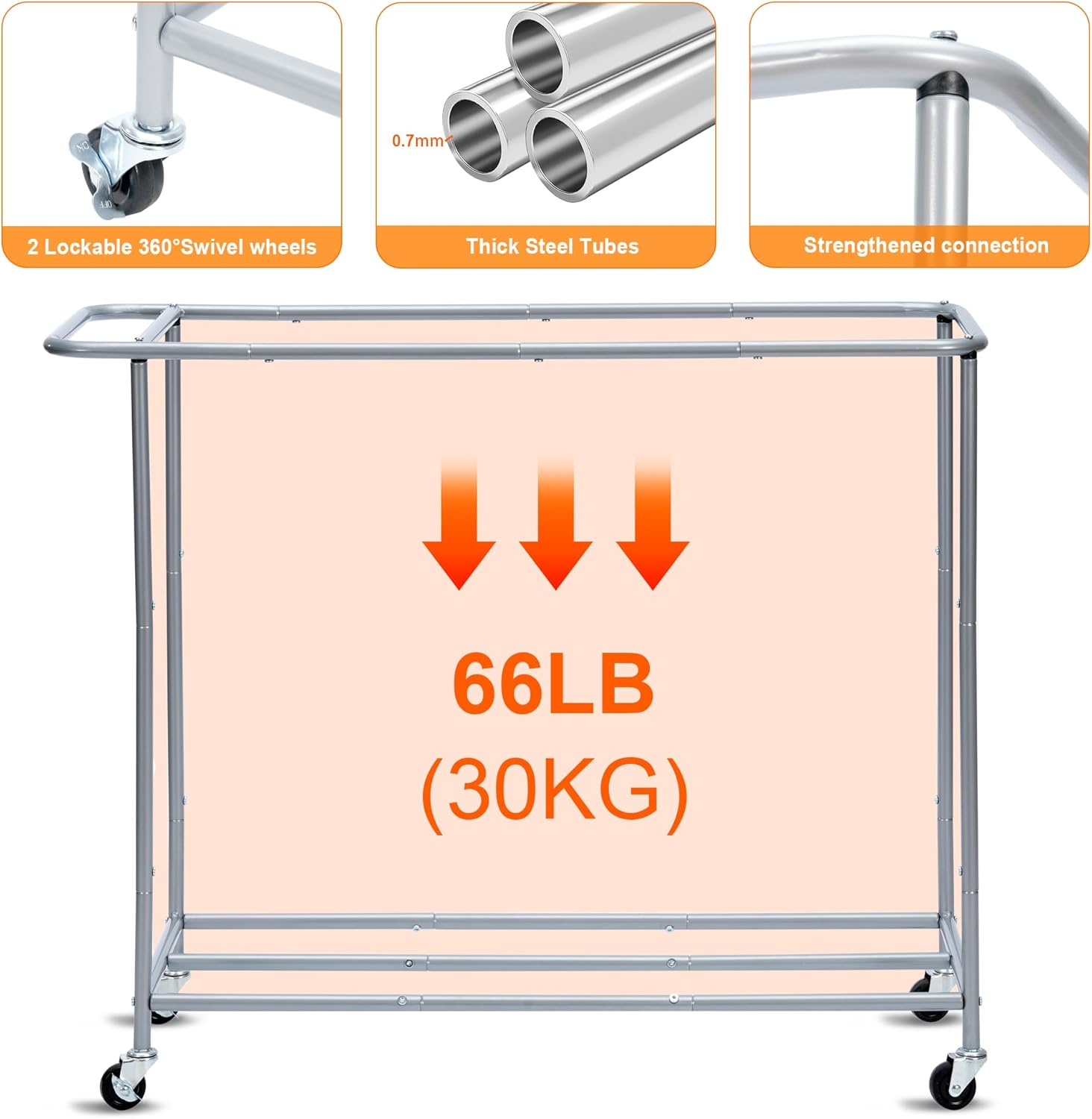 Sturdy & Stable Laundry Hamper: Our heavy-duty Laundry Basket features a thick 0.75” dia. steel frame that supports up to 44 lb of laundry and provides a strong and stable structure.