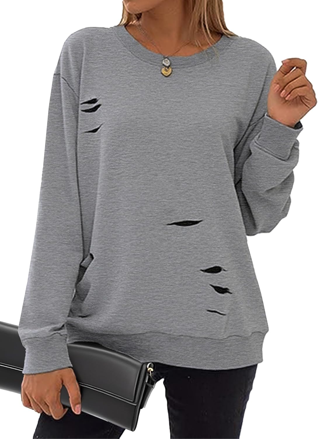 Hilinker Women’s Hole Ripped Pullover Sweatshirts, the perfect addition to your wardrobe for any occasion!