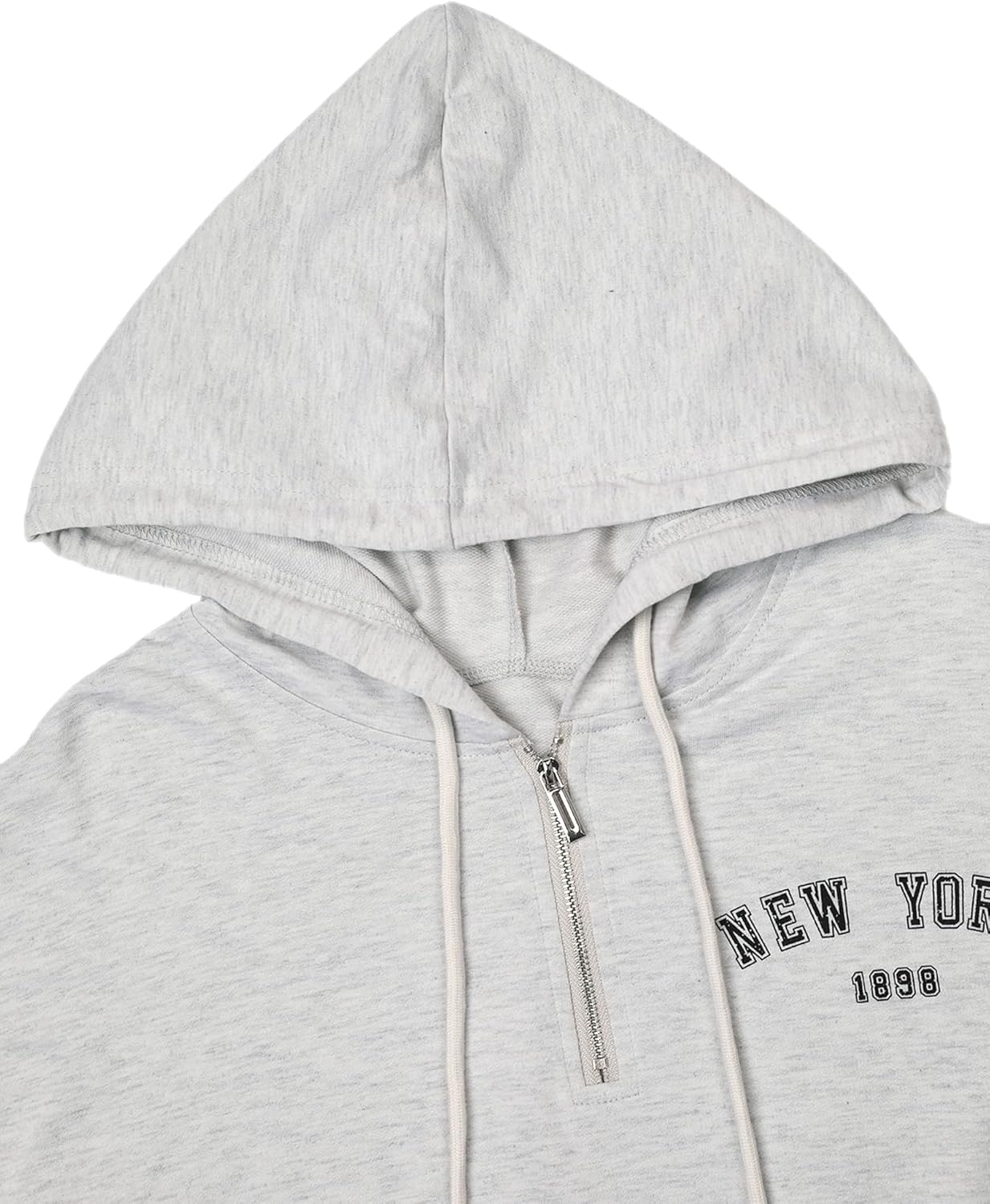 Hilinker Long Sleeve Half Zip Up Cropped Sweatshirt for Teen Girls – Grey Graphic Crop Hoodies