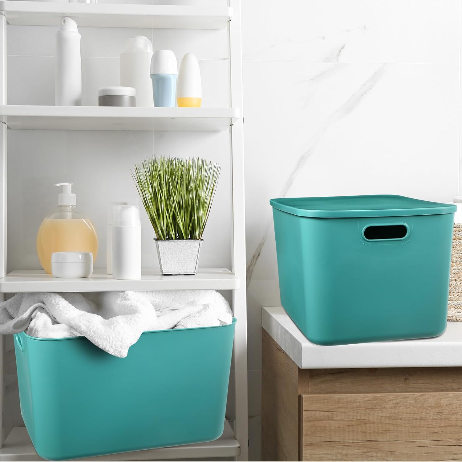 Widely Used: it is a multifunctional storage container; You can put the storage box on shelves, cabinets, closet, bathrooms, kitchens, bedrooms, refrigerators, etc., providing you with a neat and beautiful storage environment; It can also be used in children’s rooms to store toys and cultivate children’s storage habits; Unified color scheme visual expansion, a storage artifact for small apartments