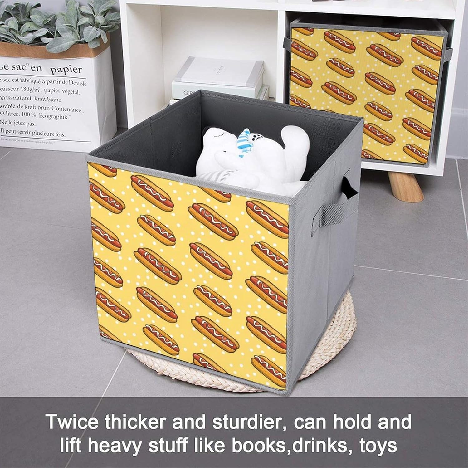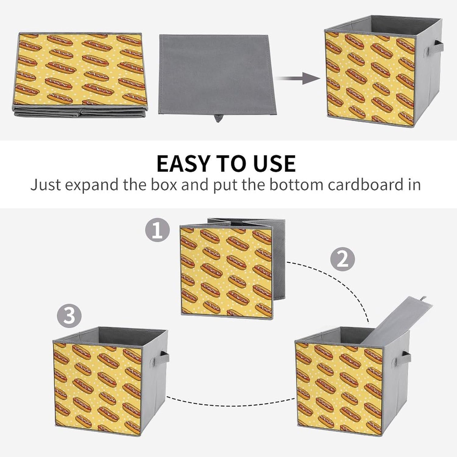 Hotdog Pattern Foldable Storage Cubes Organizers Storage Bins Square Storage Baskets for Clothes Toys 2PCS
