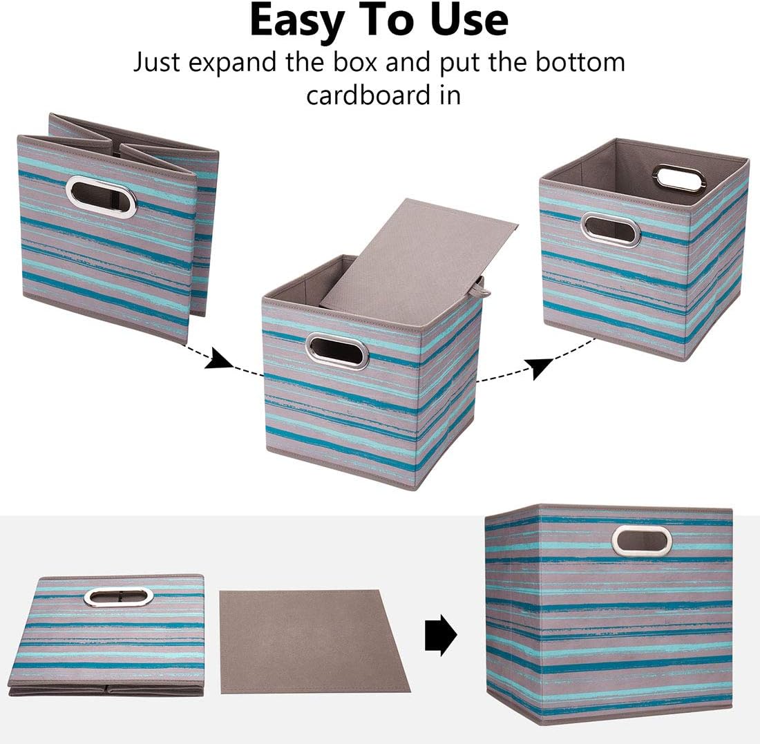 4 sets of collapsible boxes are made of breathable meltblown fabric, with sturdy stainless steel handles, cube fabric storage cubes are equipped with sturdy handles on the front and back, so you can easily pull from the shelf Out of the trash can.