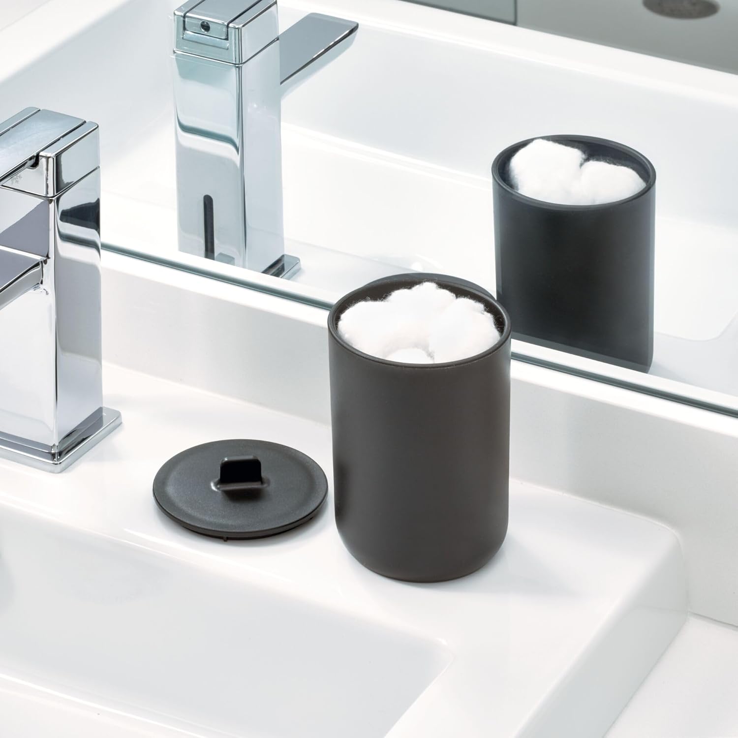 VANITY STORAGE – The iDesign Cade Canister Jar with lid makes keeping bathroom countertops organized a breeze; use as a bathroom organizer for cotton balls, makeup and hair supplies, medication, and much more