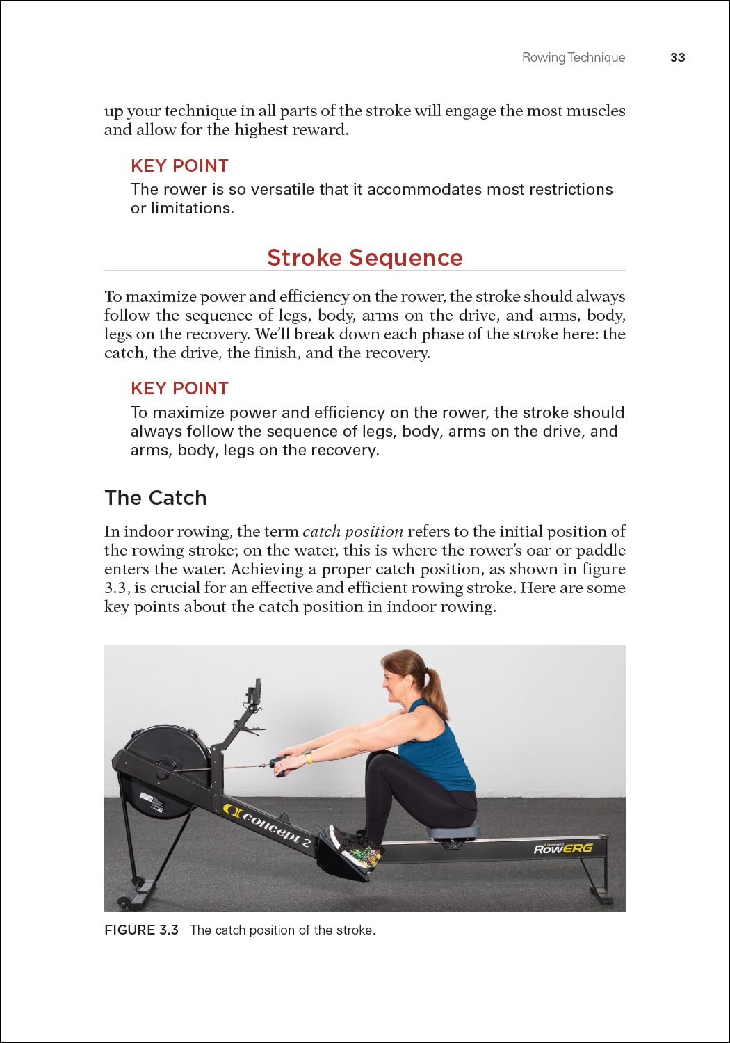 Drills to correct common rowing errors Warm-up exercises, drills, and sequences Cool-down stretches and movements Off-the-rower strength exercises Sample workouts A six-week training program