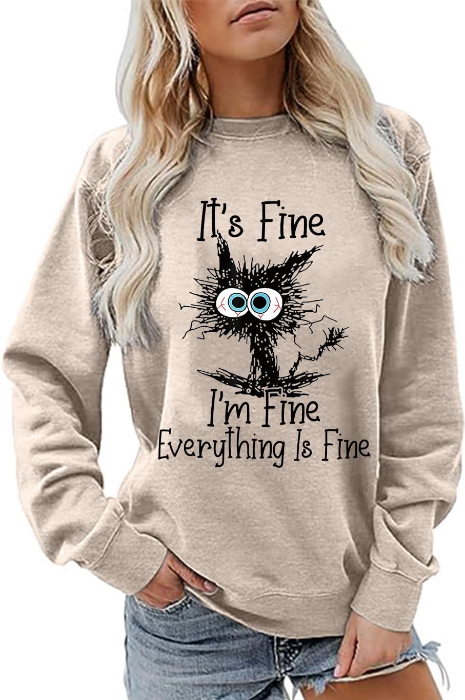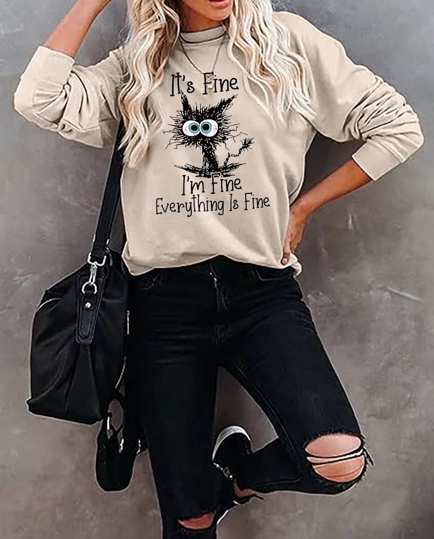 The cat it’s fine i’m fine everything is fine graphic sweatshirt is versatile and is a good layered item, or you can wear it alone; suit for casual, school, home, street, office, beach, summer vacation, party, camping, hiking, shopping, take photo, daily life; a great gift shirt for sisters,mom,aunt,friends