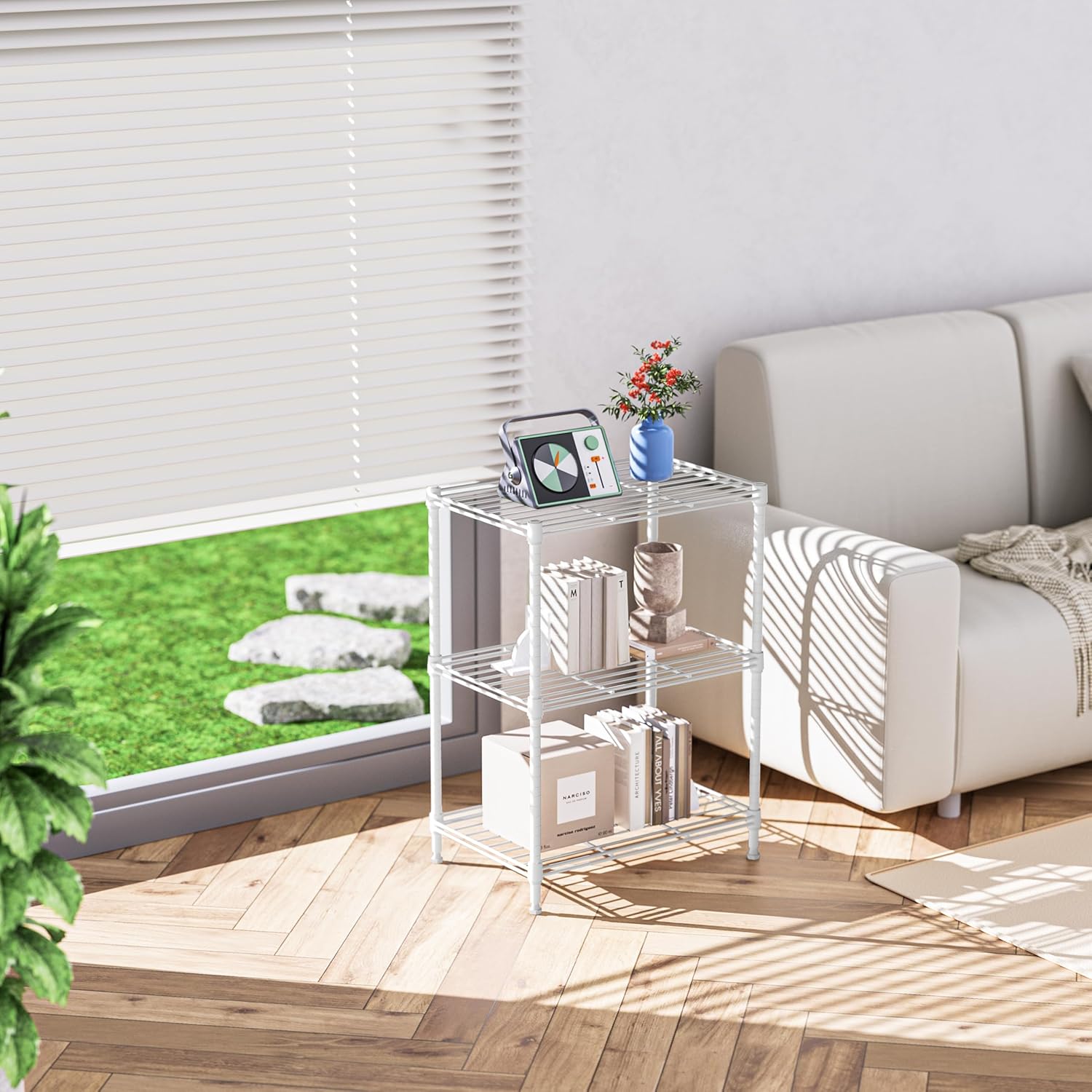 【Rust & Dirt Resistant】This IZEUK 3 tier shelf features a powder-coated finish that resists rust and dirt, ensuring long-term durability. Perfect as a wire shelving rack, display shelf, or skinny shelf for kitchen, pantry, laundry room organization, or garage storage.