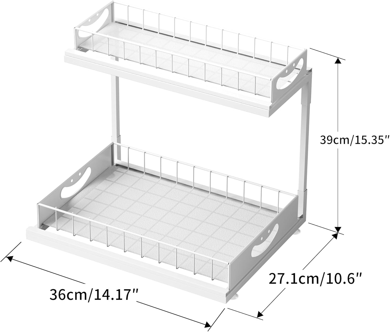 【Double Slide-out Under Sink Organizer 】The 2-layer under cabinet shelf can be pull out , make it conventient to have access to your items stored in the corner.