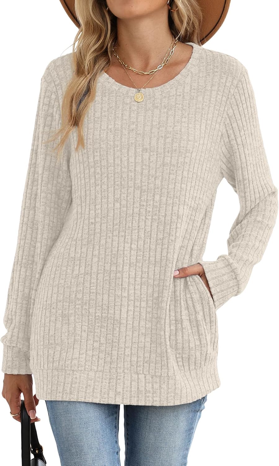 Womens Sweaters Trendy Long Sleeve Shirts with Side Pockets