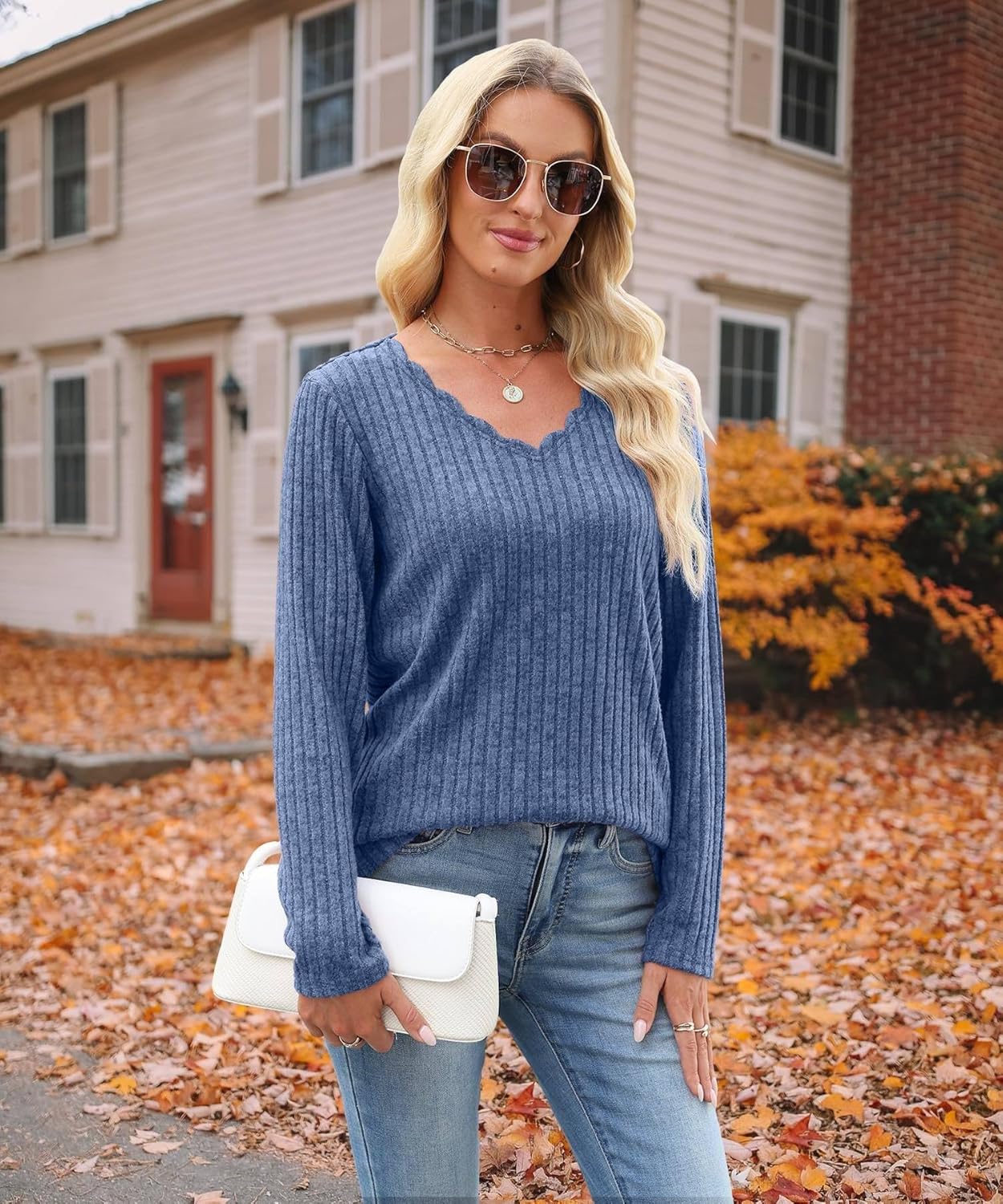 V Neck Long Sleeve Shirts for Women Casual Fall Tops Lightweight Tunic Sweaters Fashion Clothes 2025