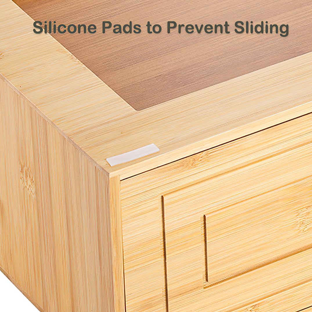 The storage cube outer size 15 x 11.75 x 6.5 inches, inner size 13.6 x 10.7 x 5.6 inches. This bamboo cube storage with drawer fits comfortably in tighter spaces while providing ample storage, offering an excellent storage solution for clothes and other items.