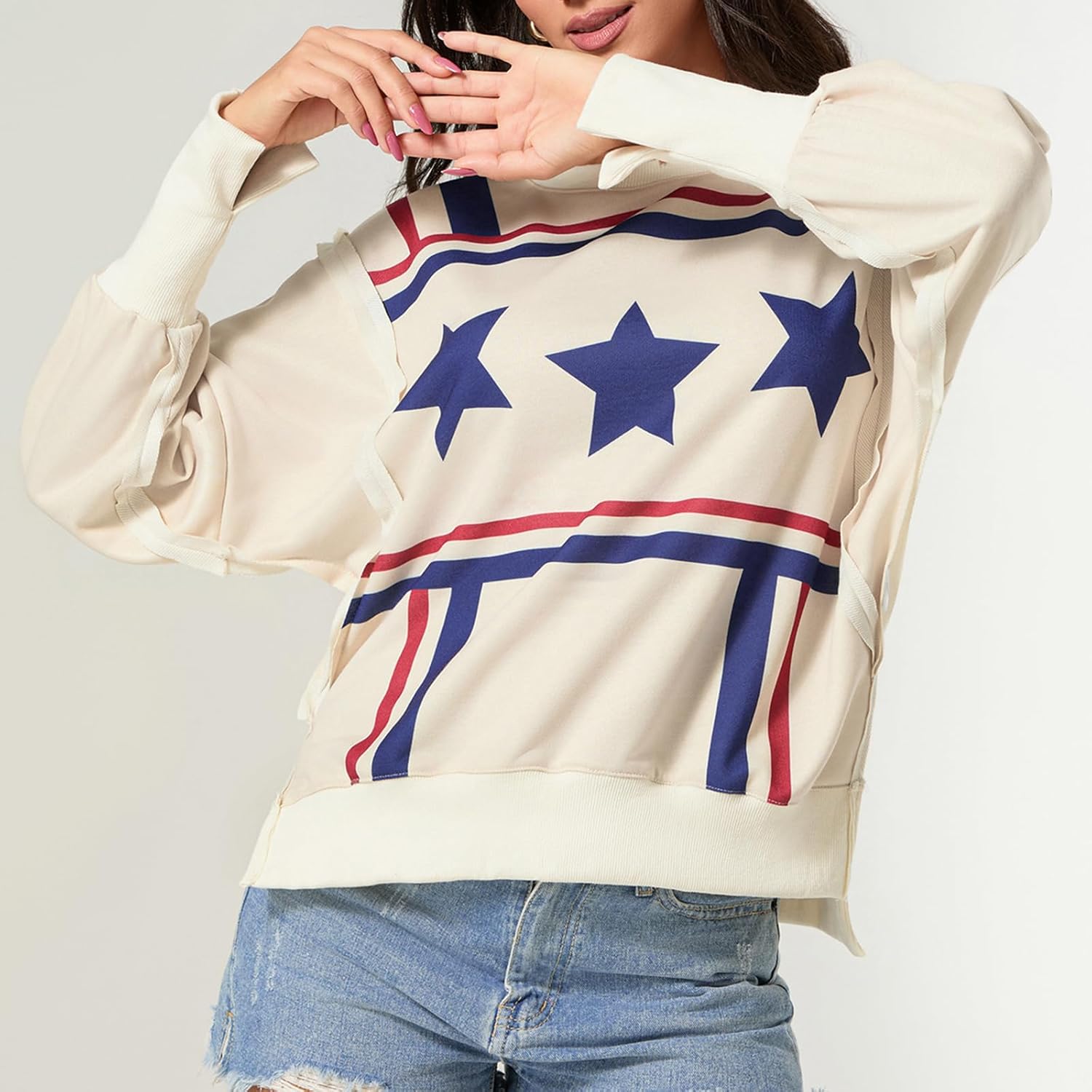 Womens Oversized Crewneck Sweatshirt Y2k Long Sleeve Pullovers Striped Retro Aesthetic Vintage Hoodie Sweater Tops