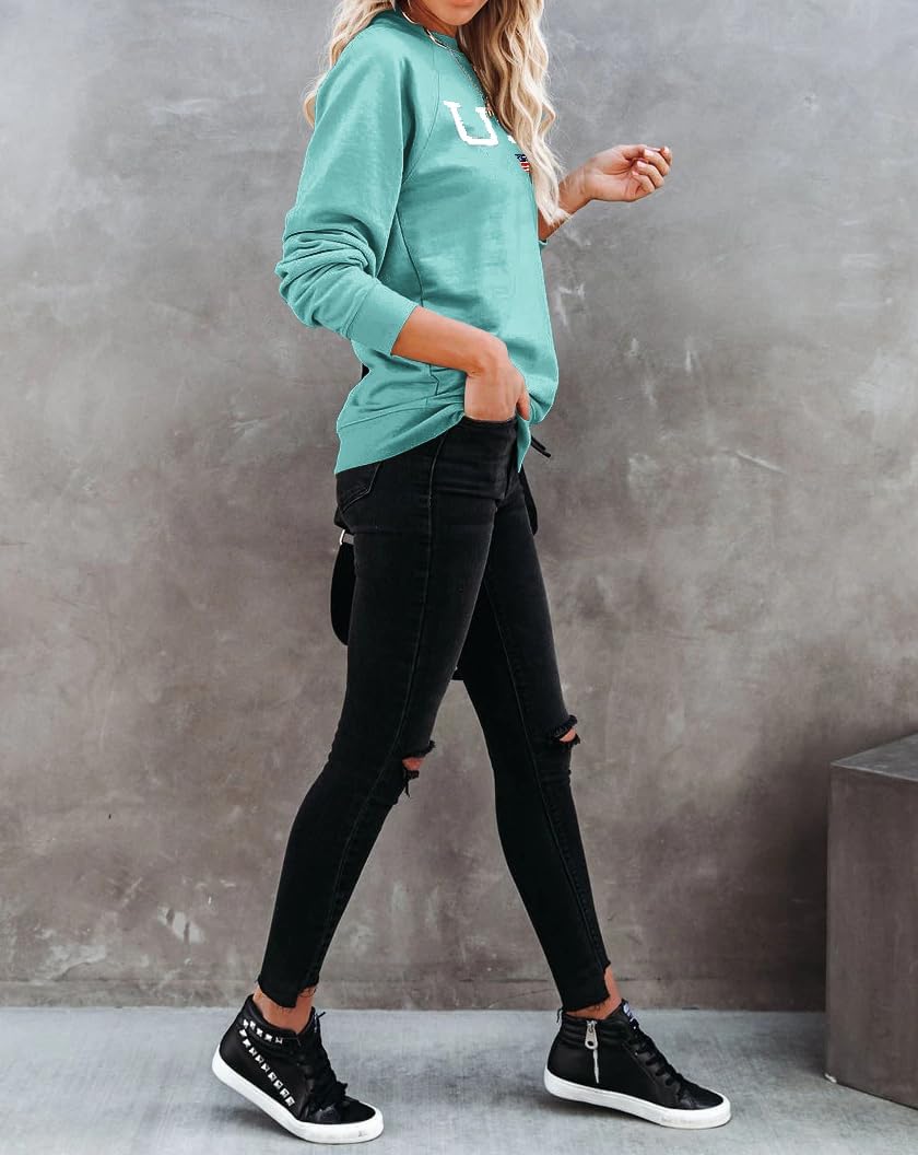 USA graphic sweatshirts for women, classic crew neck, causal loose fit, is easy to pair with jeans or casual pants for a fashion look.