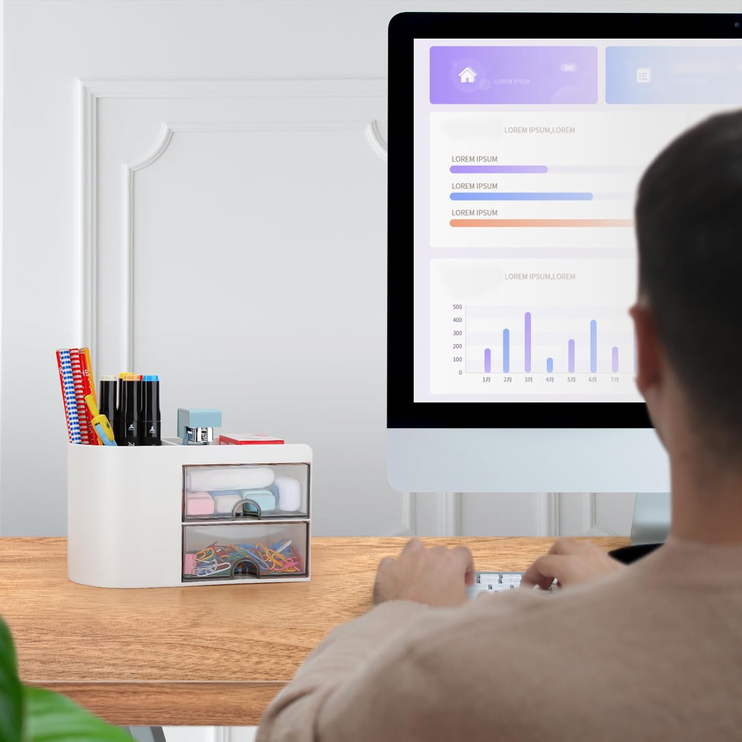 GREAT OFFICE ASSISTANT – This cute office organization with 6 compartments, including 2 drawers, 3 divided compartments, 1 top shelf organizer to organize all your office supplies, pens/pencils, rules, marker, clips, scissors, sticky notes, name cards and other small supplies