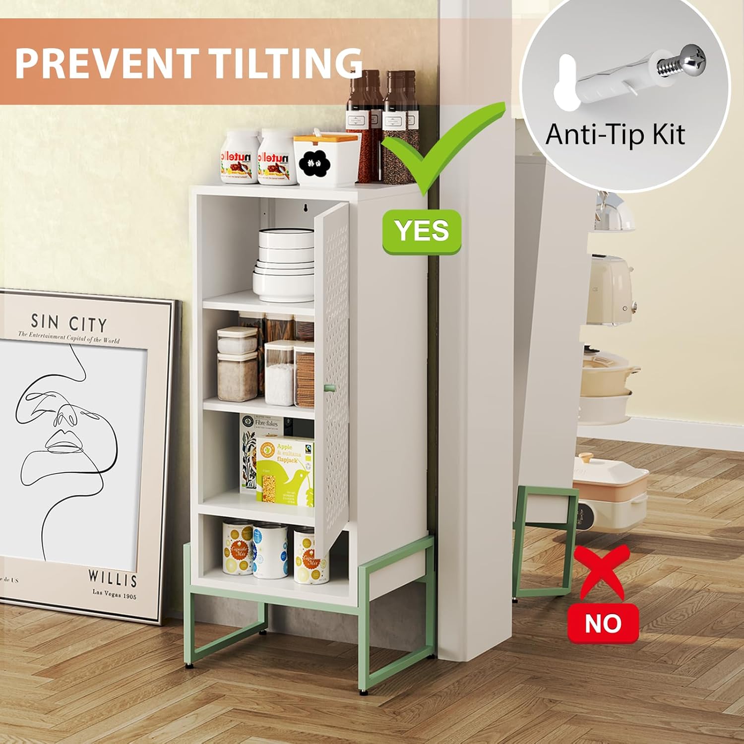 【Design to Prevent Tipping】: The bathroom floor cabinet has an anti tipping configuration and can be fixed on the wall to prevent the cabinet from tipping over during use