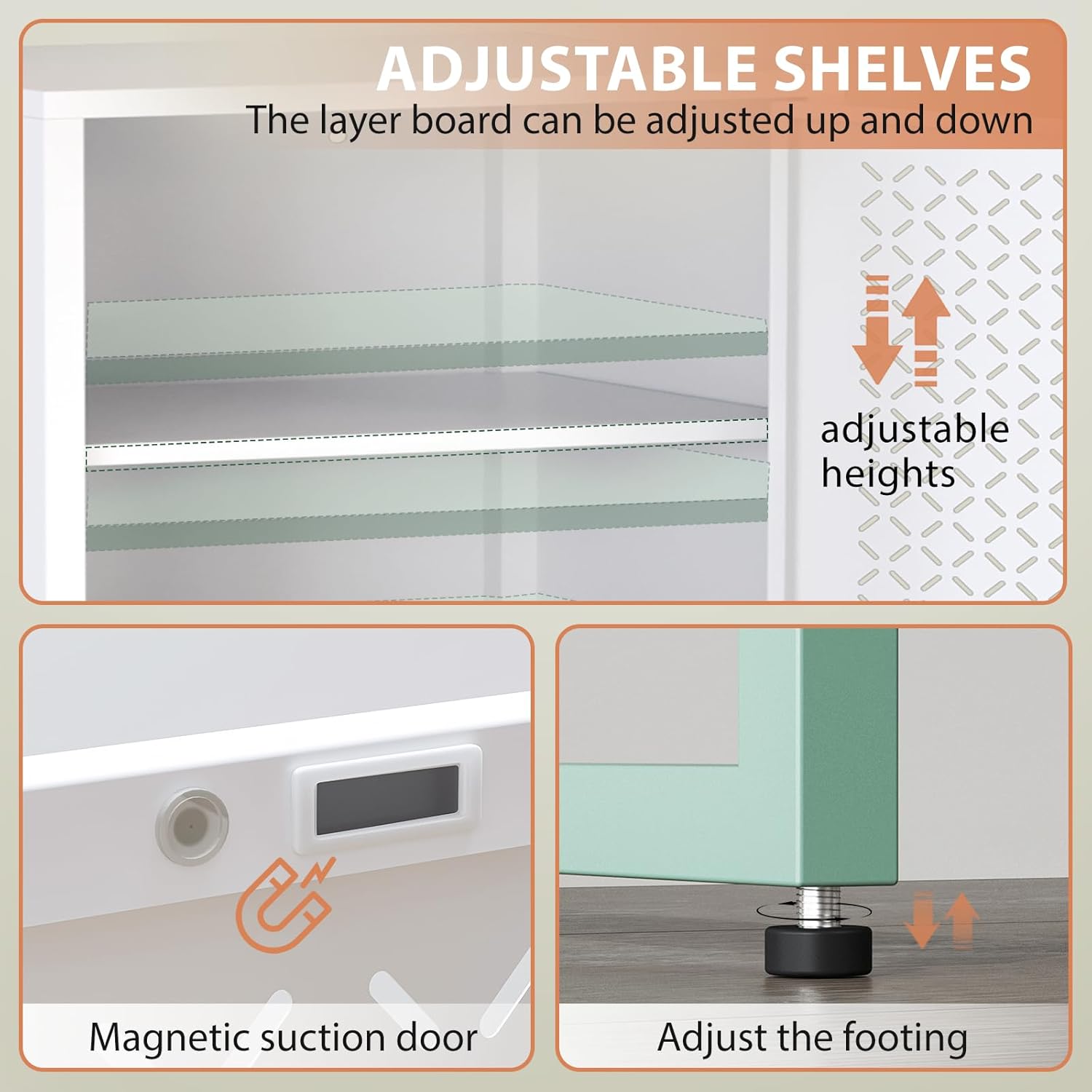 【High Quality Materials】: The bathroom storage cabinet is made of high-quality cold-rolled steel.Pantry cabinet adopts a high-quality electrostatic powder layer, which is easy to clean, scratch resistant, and sturdy and durable