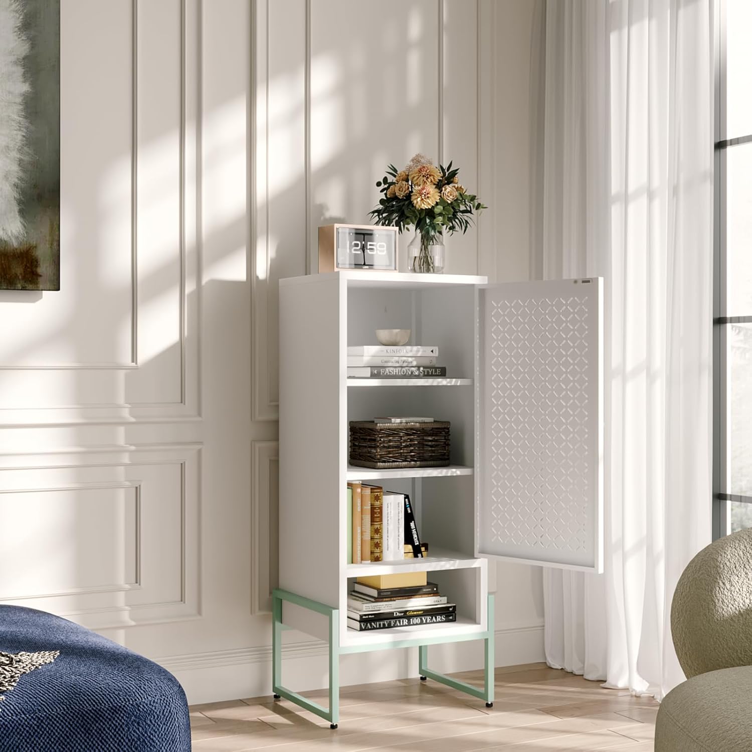 【Easy to assemble】:Metal small storage cabinet are easy to assemble. Attached is an instruction manual, which only requires a screwdriver to complete the assembly. Narrow bathroom storage cabinet can be paired with magnetic pendant for easy cabinet cleaning