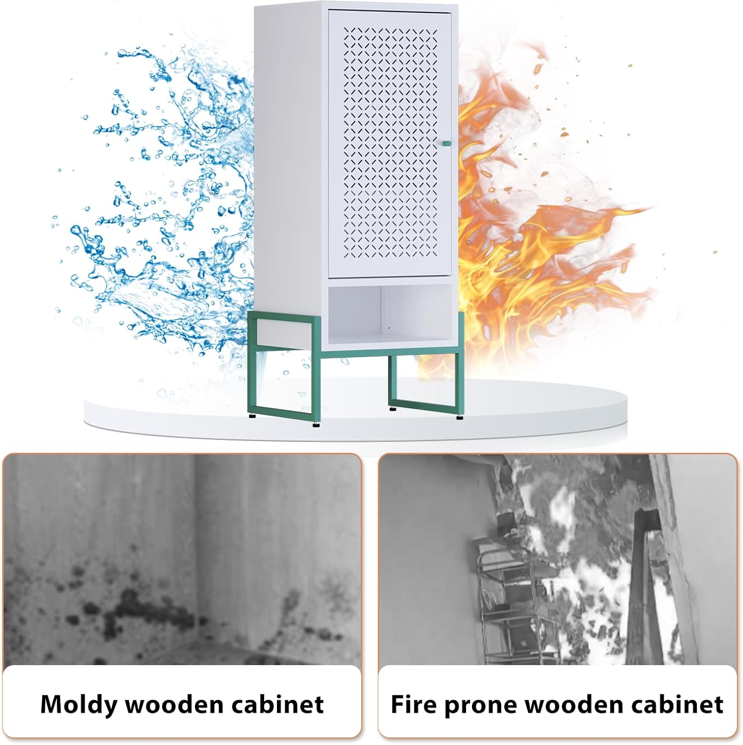 【Adjustable Shelves】: Metal bathroom cabinet with 3 adjustable shelves, you can move the shelves up and down as needed.Each shelf can hold up to 120 pounds with fireproof and waterproof