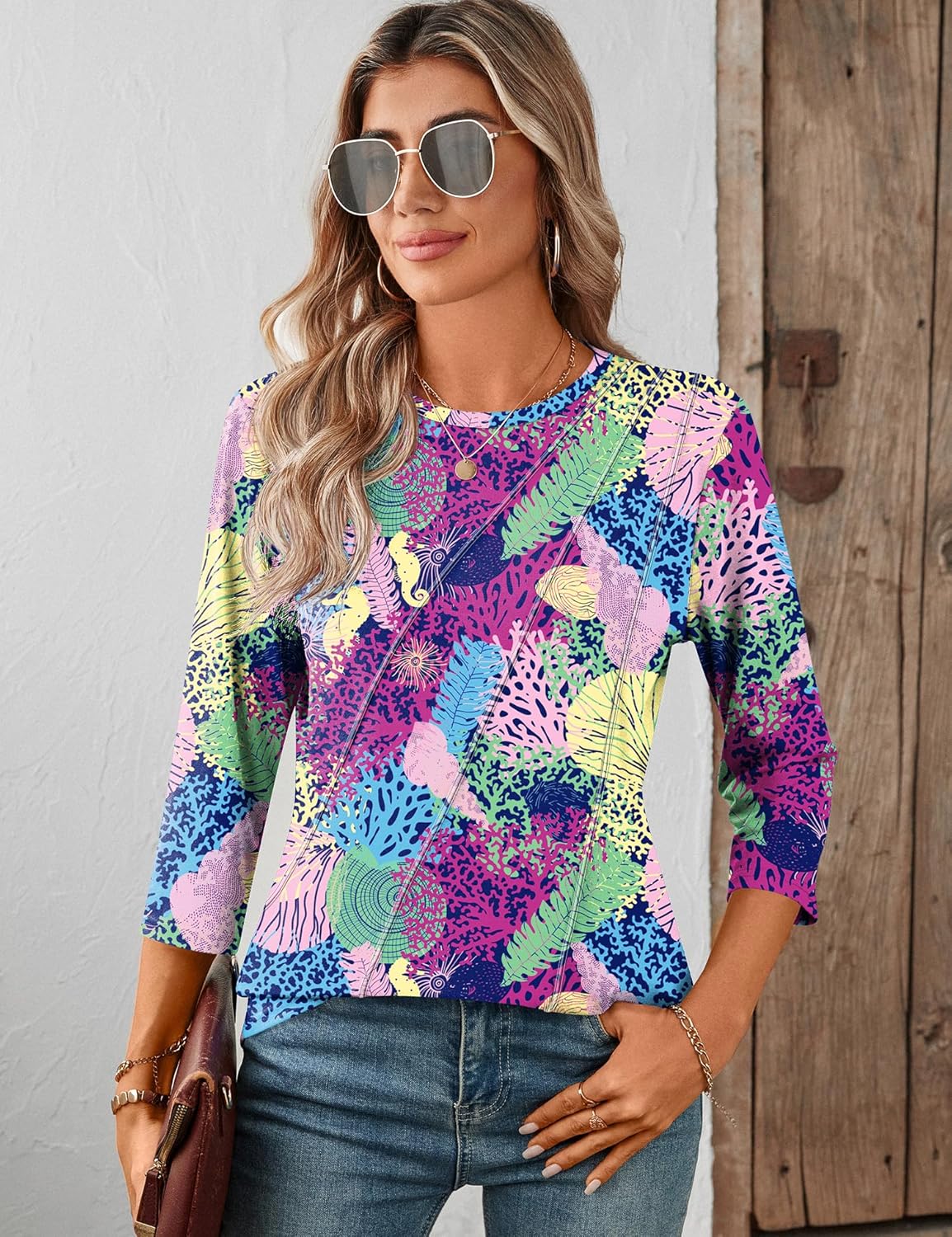 LOMON Women’s 3/4 Sleeve Tops Spring Shirts for Women 2025