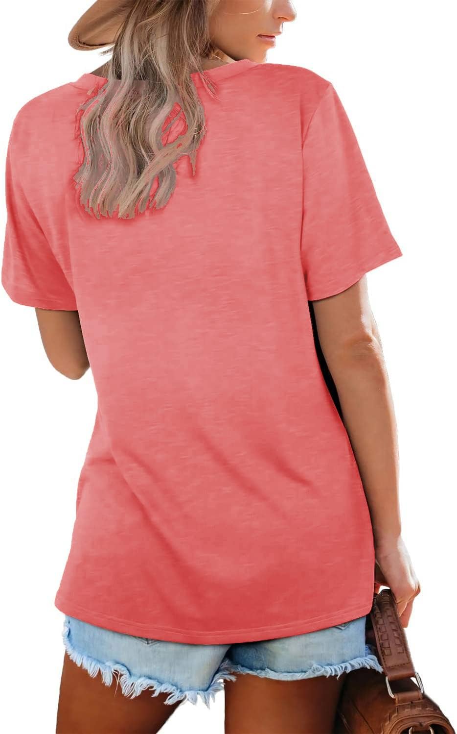 Lunivop Womens Tops Casual V Neck Short Sleeve Solid Color Basic T Shirt