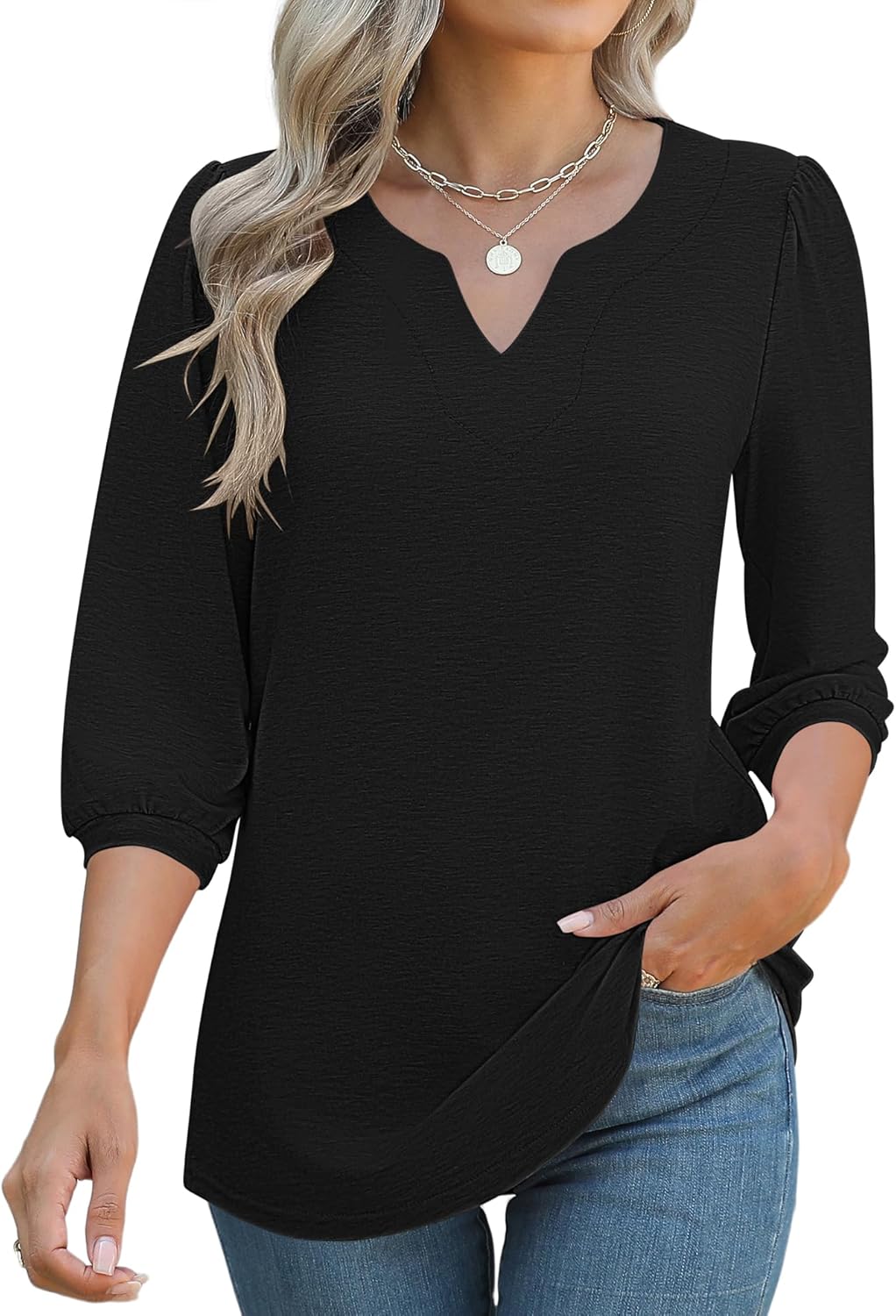 LUYAA 3/4 Length Sleeve Womens Tops Dressy Casual V-Neck Puff Sleeve Blouses Business Work Tunic Shirt S-XXL