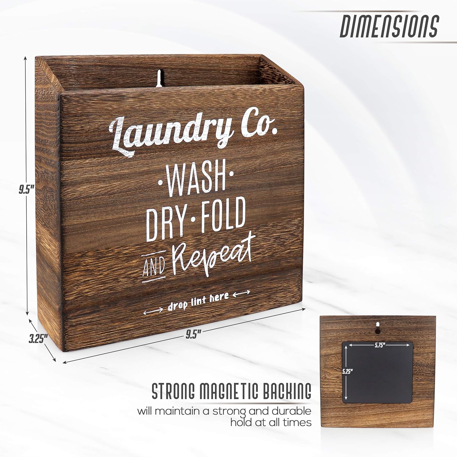 Wherever You Wish – Select the spot that suits your needs! Crafted of wood, your lint holder mounts to the wall or sticks to your washer or dryer thanks to its magnetic back and keyhole hanger.