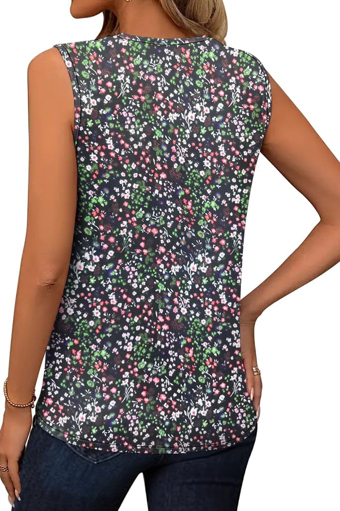 Magritta Womens 2025 Trendy Summer Tank Tops Casual Round Neck Sleeveless Shirts Pleated Work Blouse