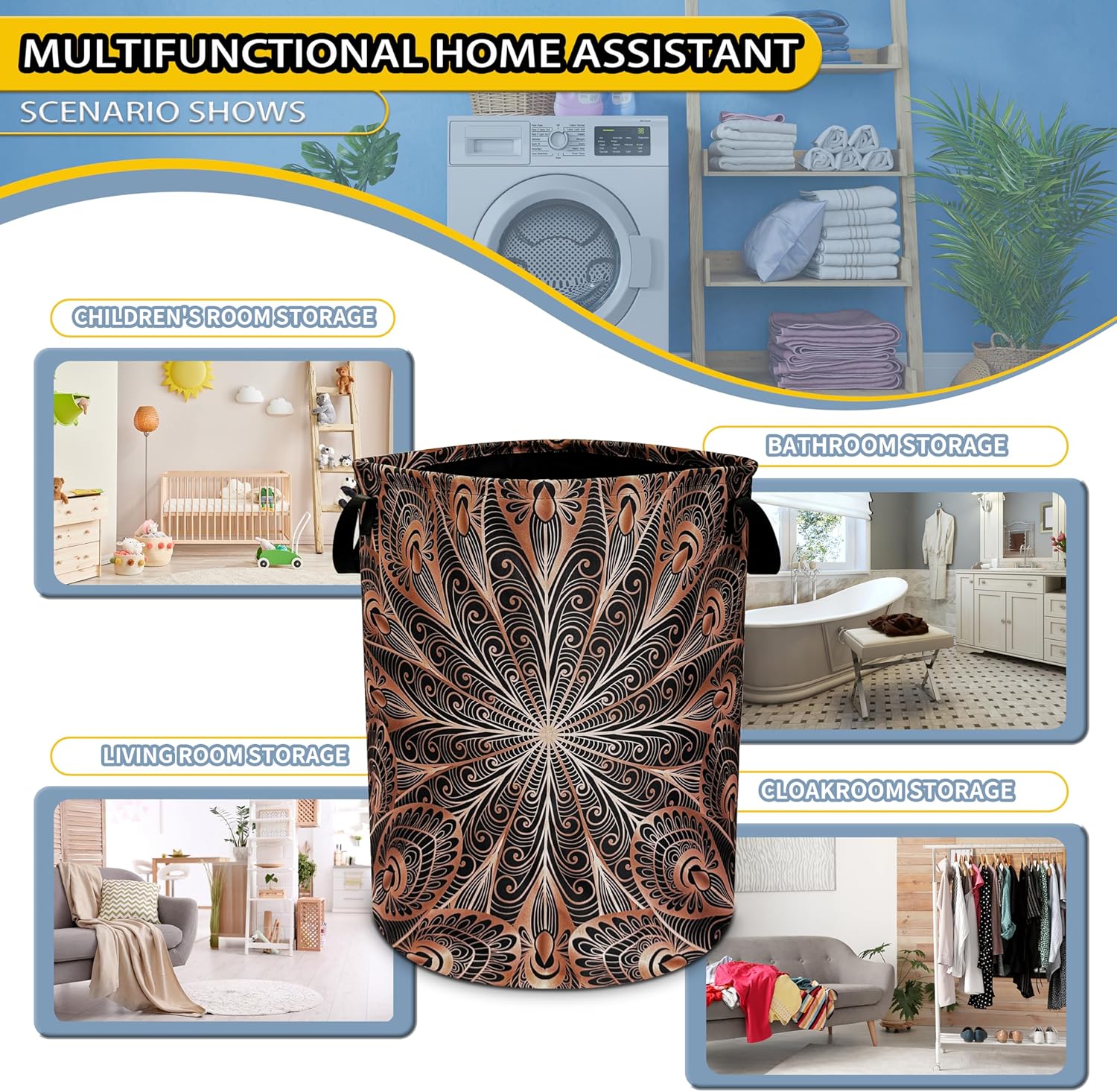 With handle: There are handles on both sides of the laundry basket, the handle is strong, and the reinforced design makes it easy to grab and hold, and can be easily picked up and moved.