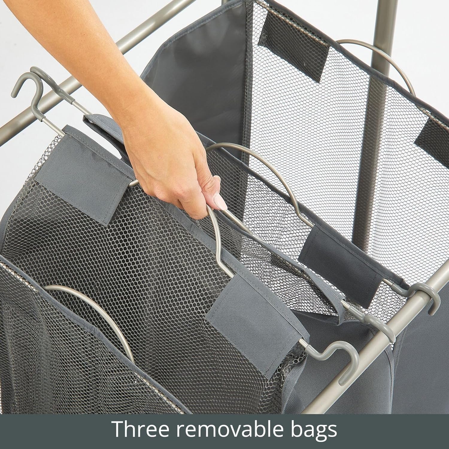 Divide laundry loads with the three removable bags.
