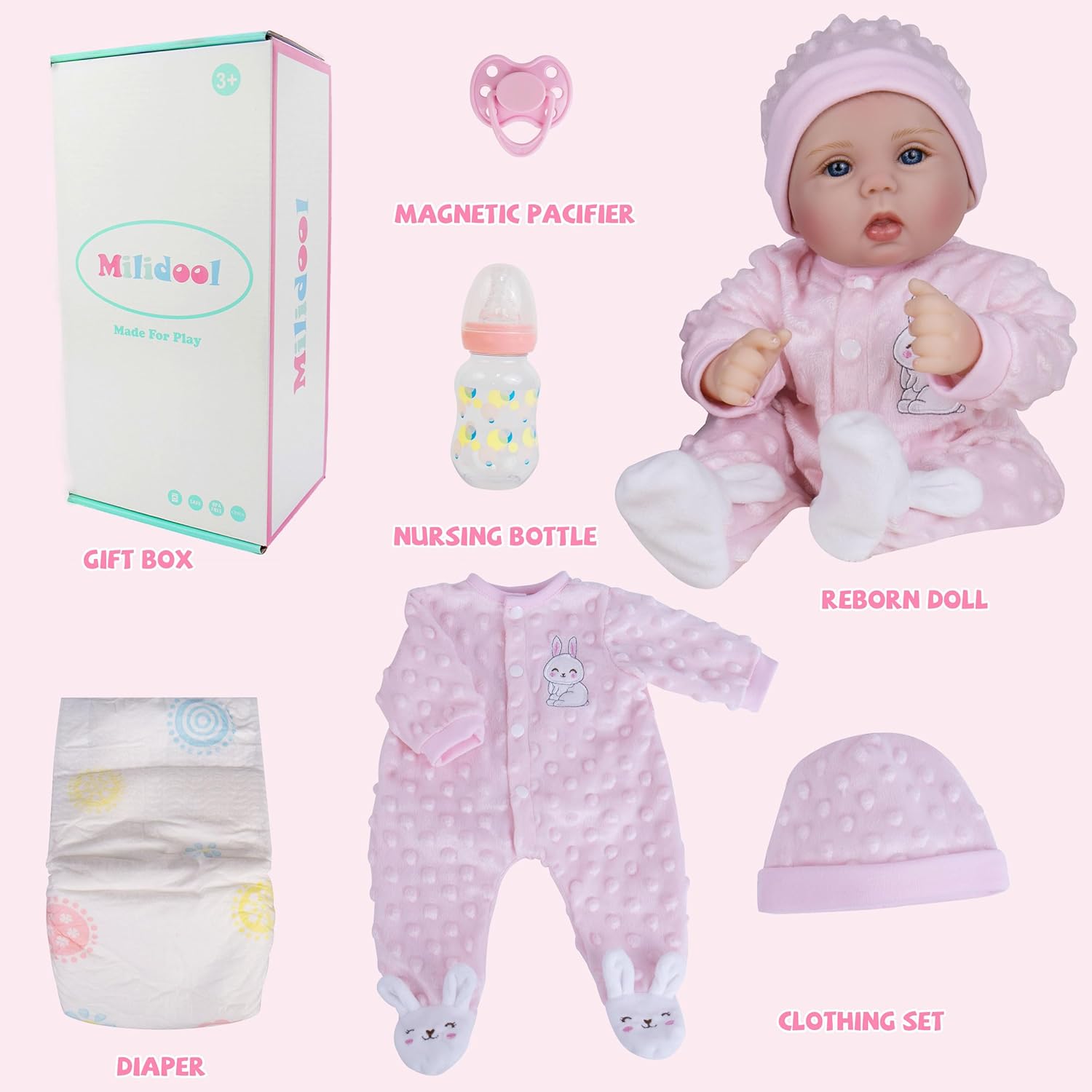 Safety Assurance: Our Milidool baby dolls for girls are made from high-quality, environmentally friendly, and non-toxic materials. Safety is our top priority, and they comply with safety certifications ASTM F963 and EN71 for children aged 3 and above, ensuring a safe play experience.