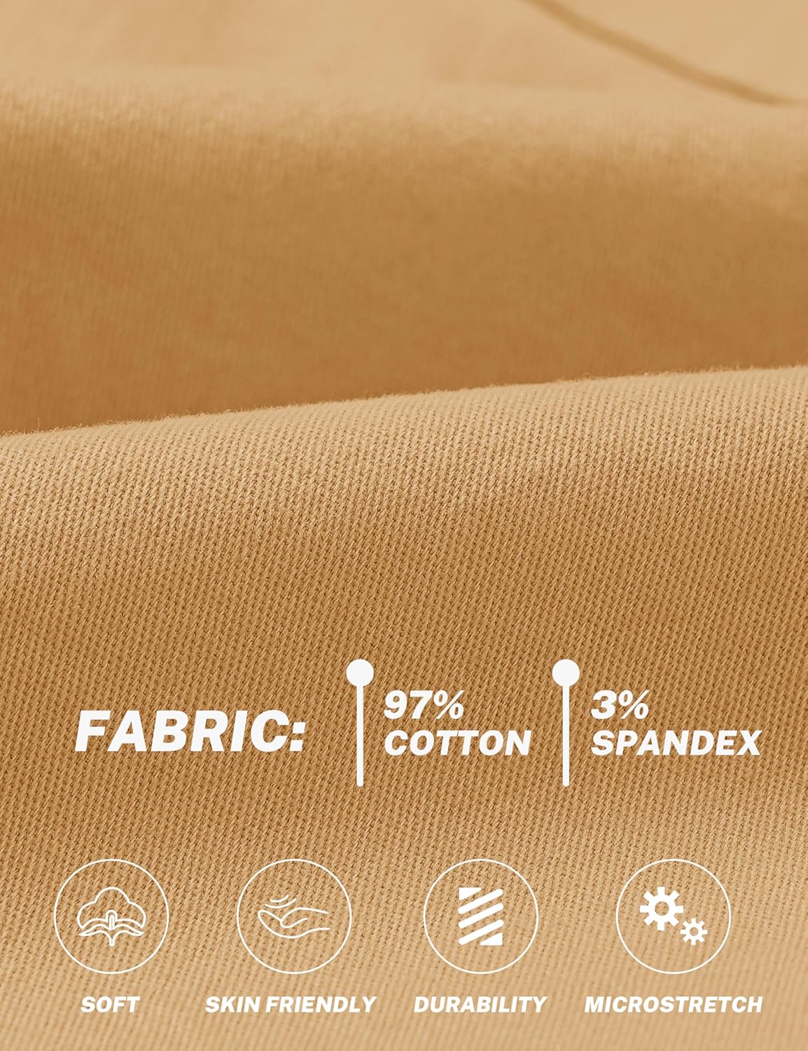 These cargo shorts are made from a premium blend of 97% cotton and 3% spandex, designed to offer breathability, durability, lightweight comfort, and easy care, making them ideal for summer outdoor wear.