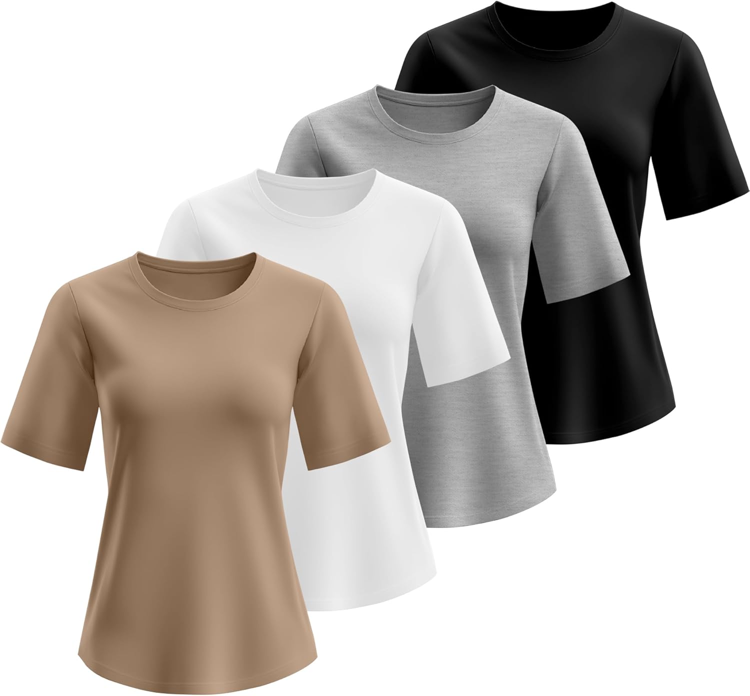 Neer 4 Pack Women’s Half Sleeve Top Elbow Length T Shirt Women Round Neck Basic Cotton Tee Summer Casual Blouses