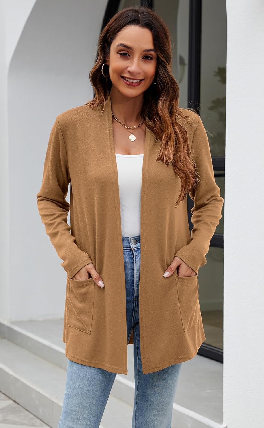 Newchoice Womens Open Front Long Sleeve Cardigan Sweater with Two Pockets