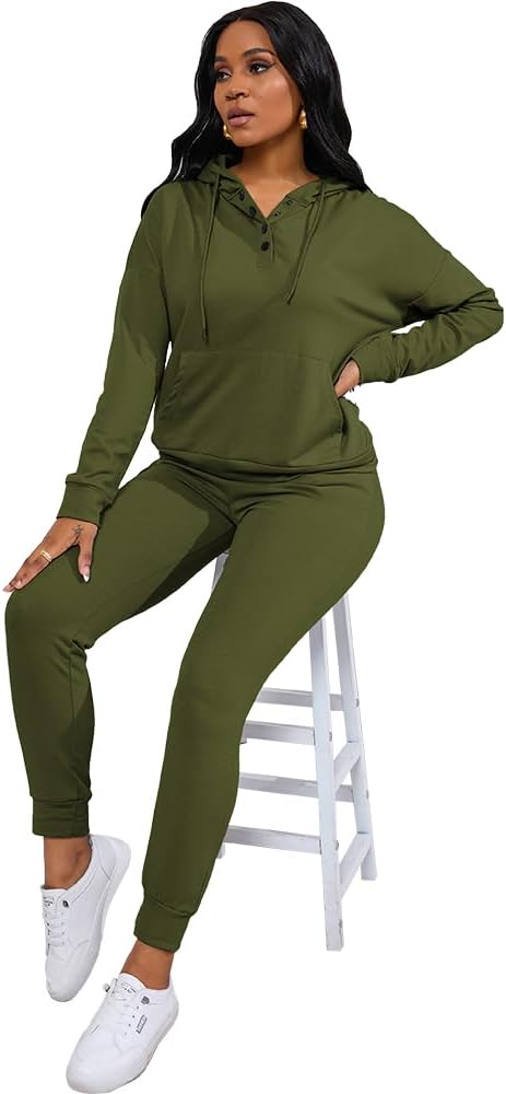 Two Piece Outfits For Women, Long Sleeve, Hoodie, Pullover, Button,Pull On.Elastic Band, Tops And Pant Sets With Pockets.Comfortable fabric, minimalist design, easy to match.