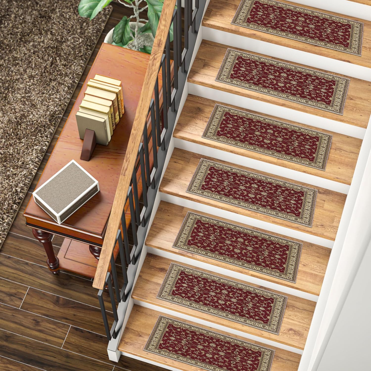 Homenette Stair Treads rugs act as a protective barrier, preventing wear and damage to your stairs. Their durable design ensures longevity while preserving the aesthetic appeal of your staircase. Homentte Stair Treads rugs effectively shield your stairs, preserving their integrity and appearance.