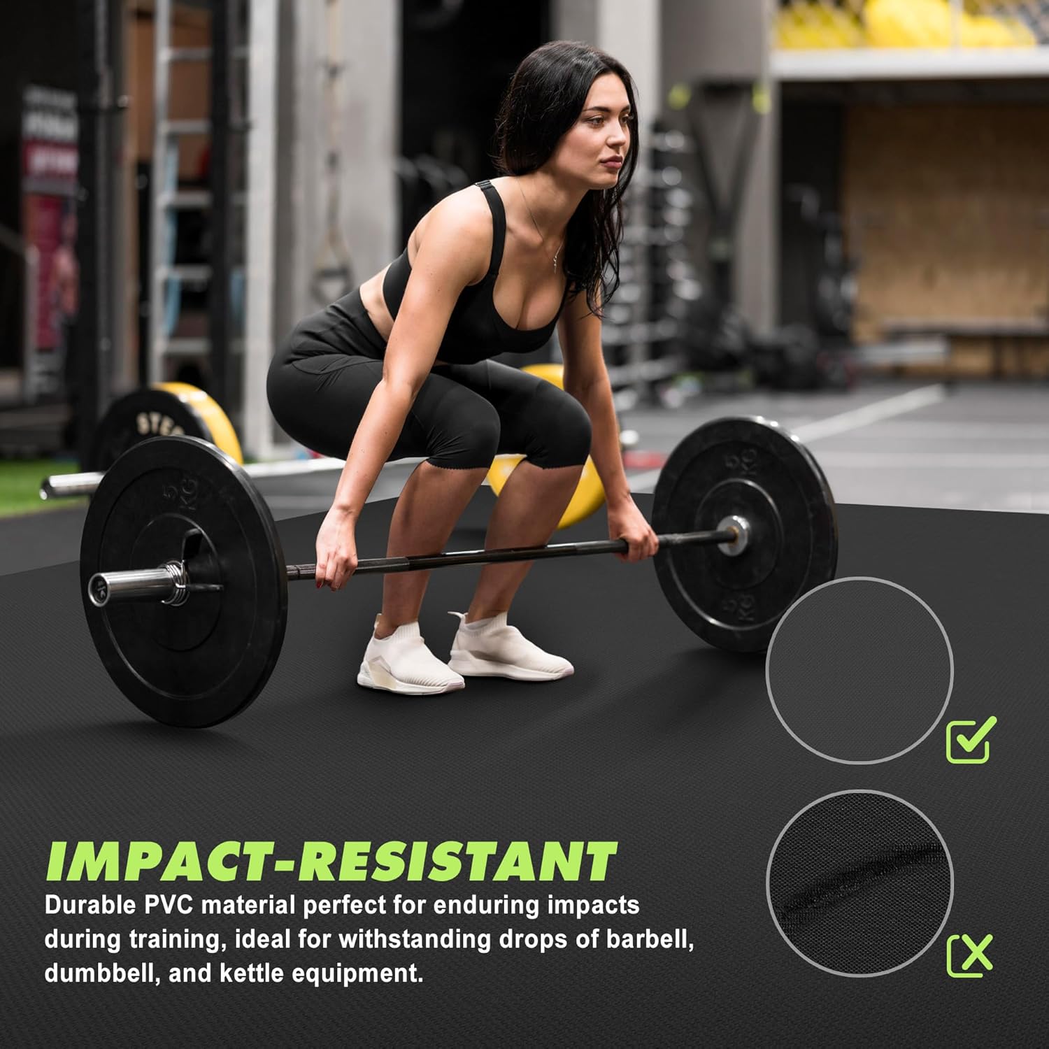 Say goodbye to discomfort during floor exercises with our thick workout mat for home. Its durable construction ensures stability and grip, so you can focus on your fitness goals without worrying about slipping or sliding. This gym floor mat also protects your floors from damage caused by heavy exercise equipment, making it a must-have for any home gym mat setup or rubber floor mats for home gym.