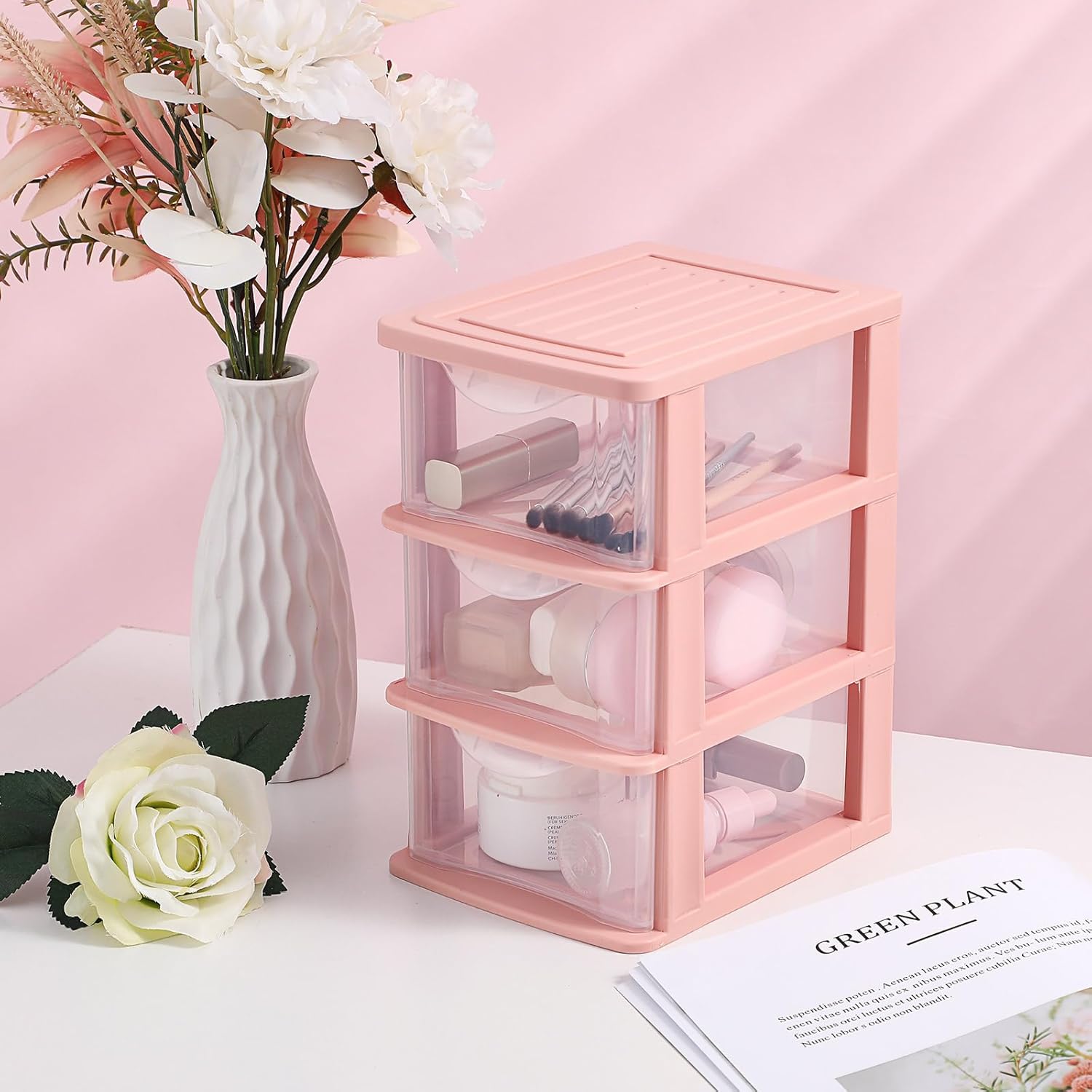 Desktop Storage Drawer Cosmetic Makeup Organizer Plastic Drawer Organizer 3 Drawer Mini Desktop Drawers Home Office Table Storage