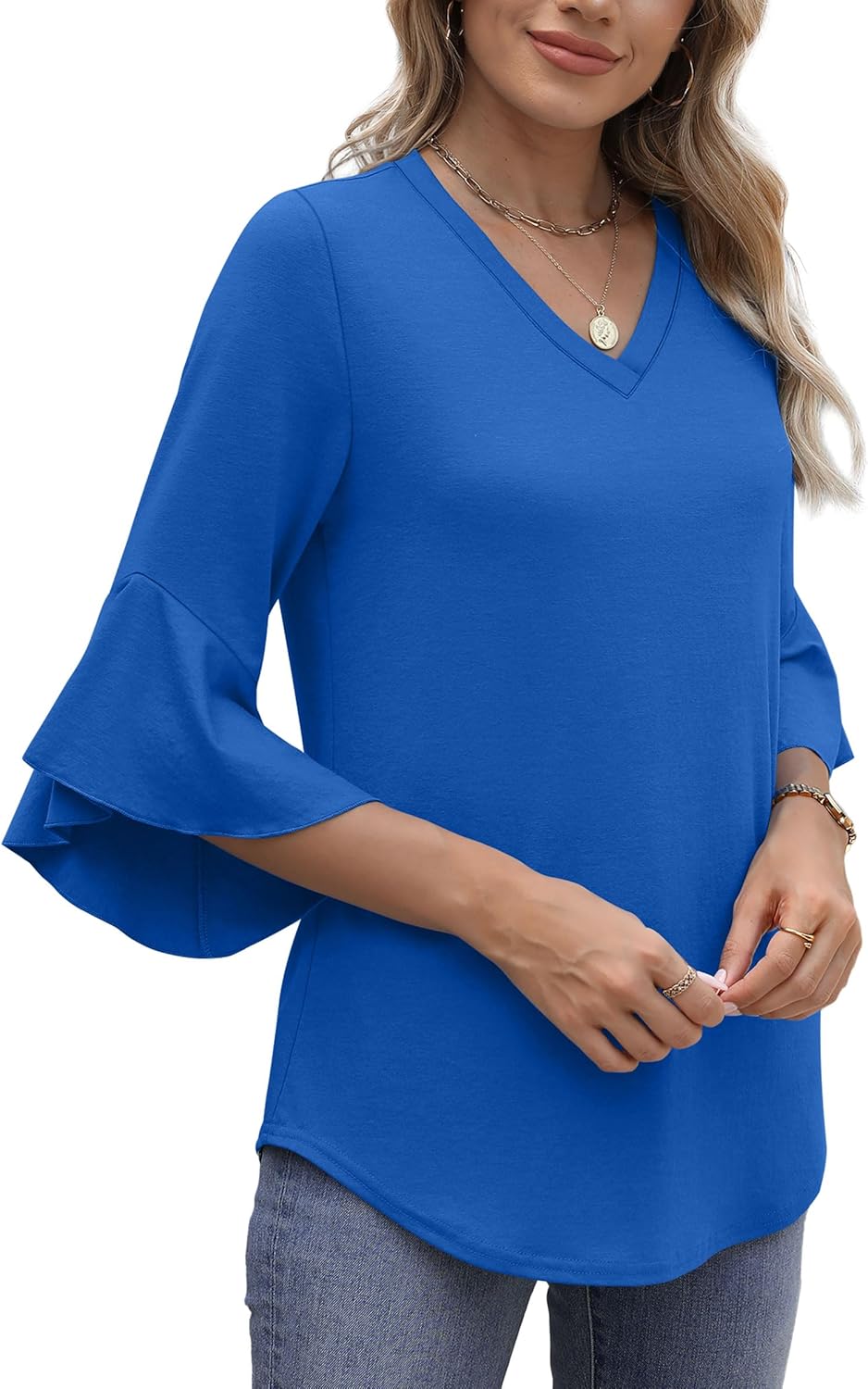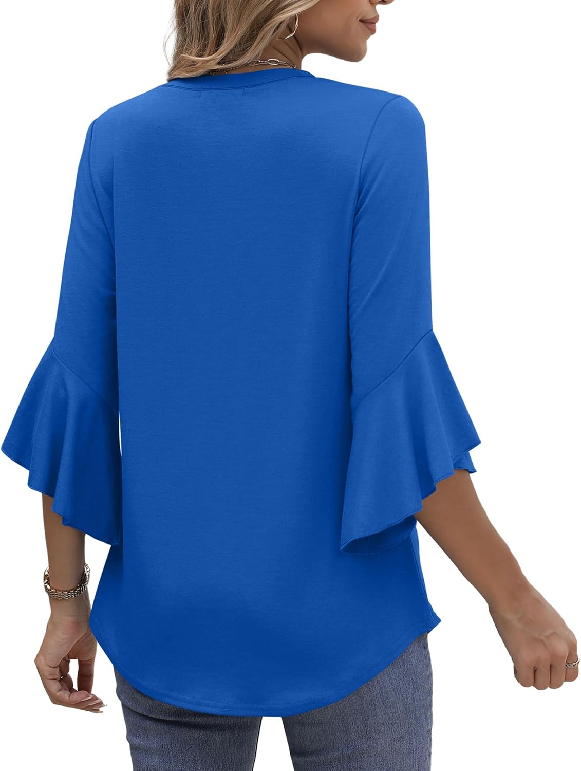 OFEEFAN Blouses for Women Dressy Casual 3/4 Length Sleeve Womens Tops V Neck Tshirts Shirts with Flared Sleeve