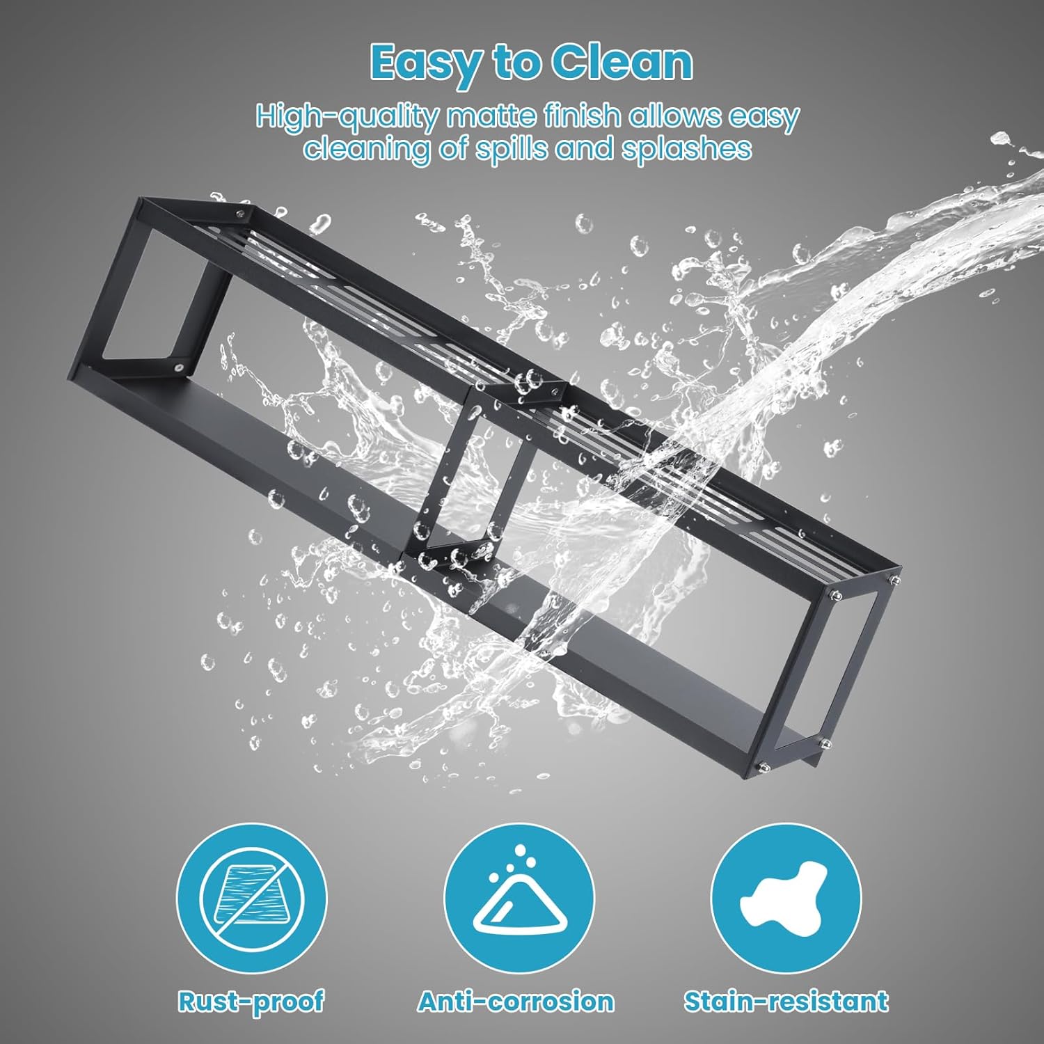 STURDY AND LONG-LASTING: Made from heavy duty stainless steel with matte finish, this magnetic shelf for stove top is highly resistant to rust, stains and corrosion, and easy to clean, with anti-drop fence to secure your seasoning bottles and prevent spills. Designed with elegance in mind, the magnetic stove top shelf black can seamlessly blend into any kitchen style