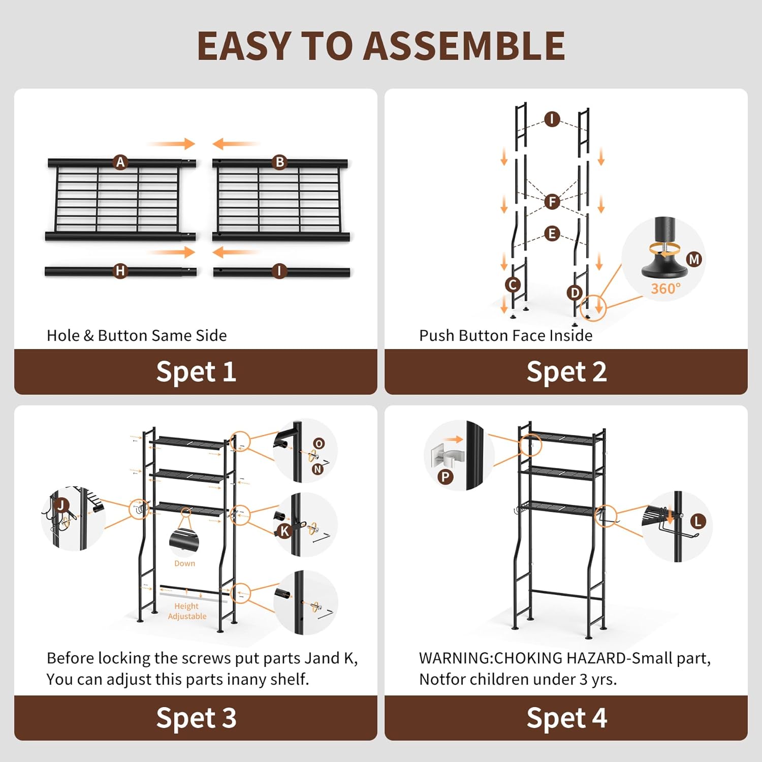 Easy Assembly & Versatile Use:The CAMOAT Over The Toilet Storage is designed for quick and hassle-free assembly. Its simple construction allows you to set it up in minutes using the included instructions. Once assembled, this bathroom shelves system can be used as a vanity organizer in the bathroom or repurposed as a storage solution in the kitchen, living room, or office. Whether you’re organizing towels or displaying decorative items, this versatile system adapts to your needs