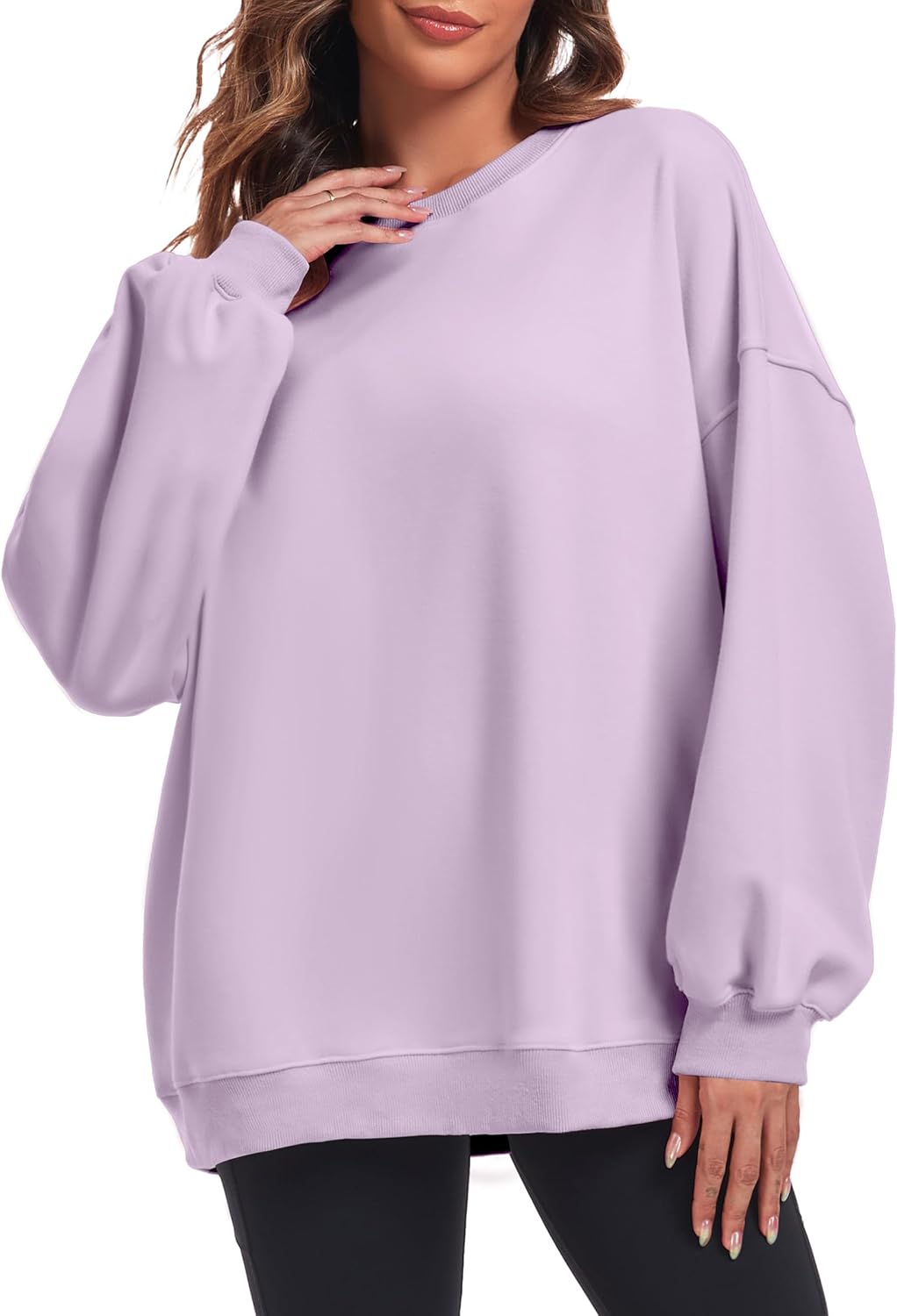 FKEEP Women’s Oversize Crew Neck Long Sleeve Fleece Sweatshirt