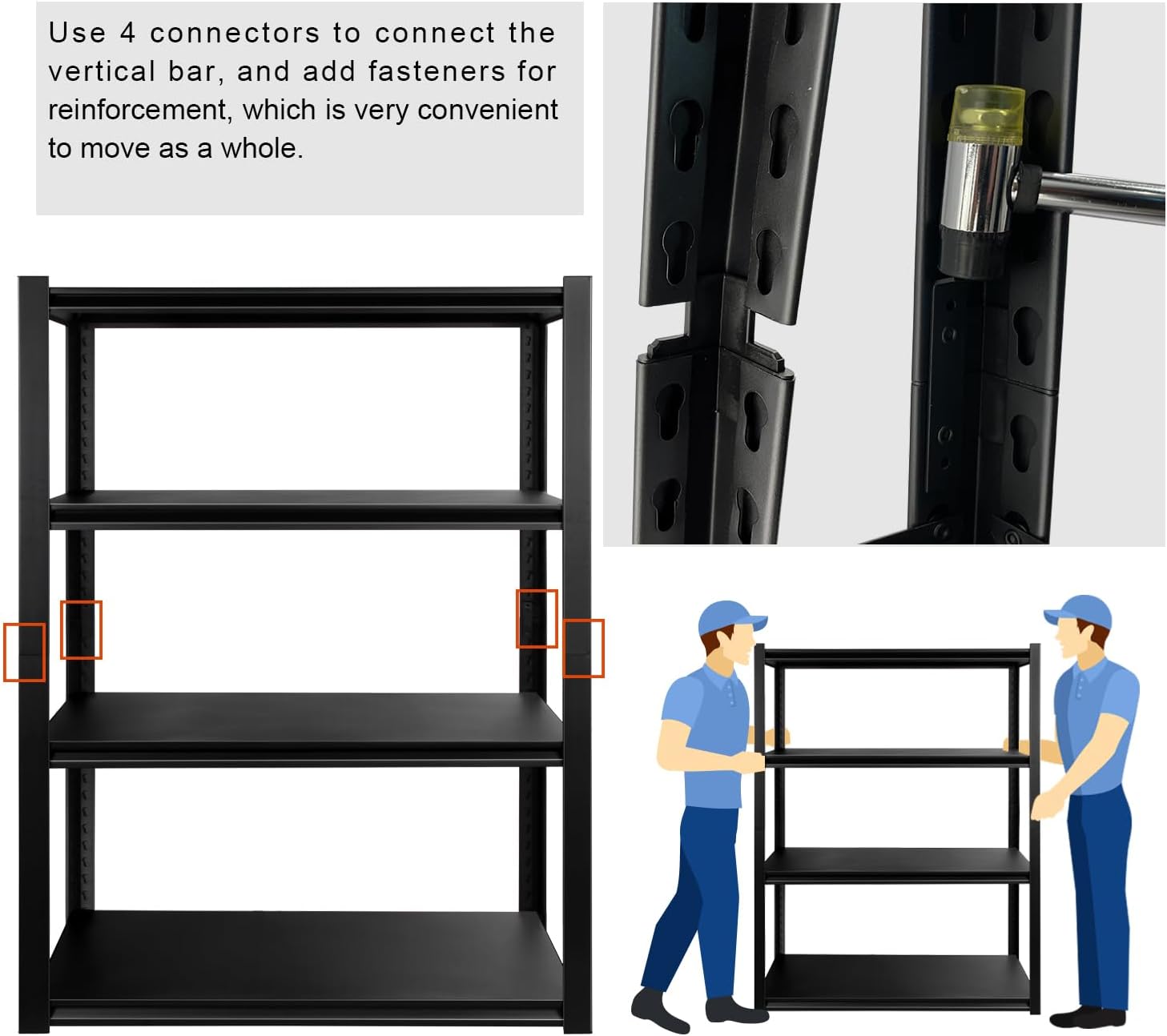 STURDY & RUST-PROOF: Black powder-coated steel construction for extra durability, this heavy-duty storage shelves boasts a moisture-resistant and water-resistant coating, ensuring easy cleaning and low-maintenance upkeep. Its sleek matte finish adds an industrial flair to any setting. And, when loaded, it didn’t rock or move at all.